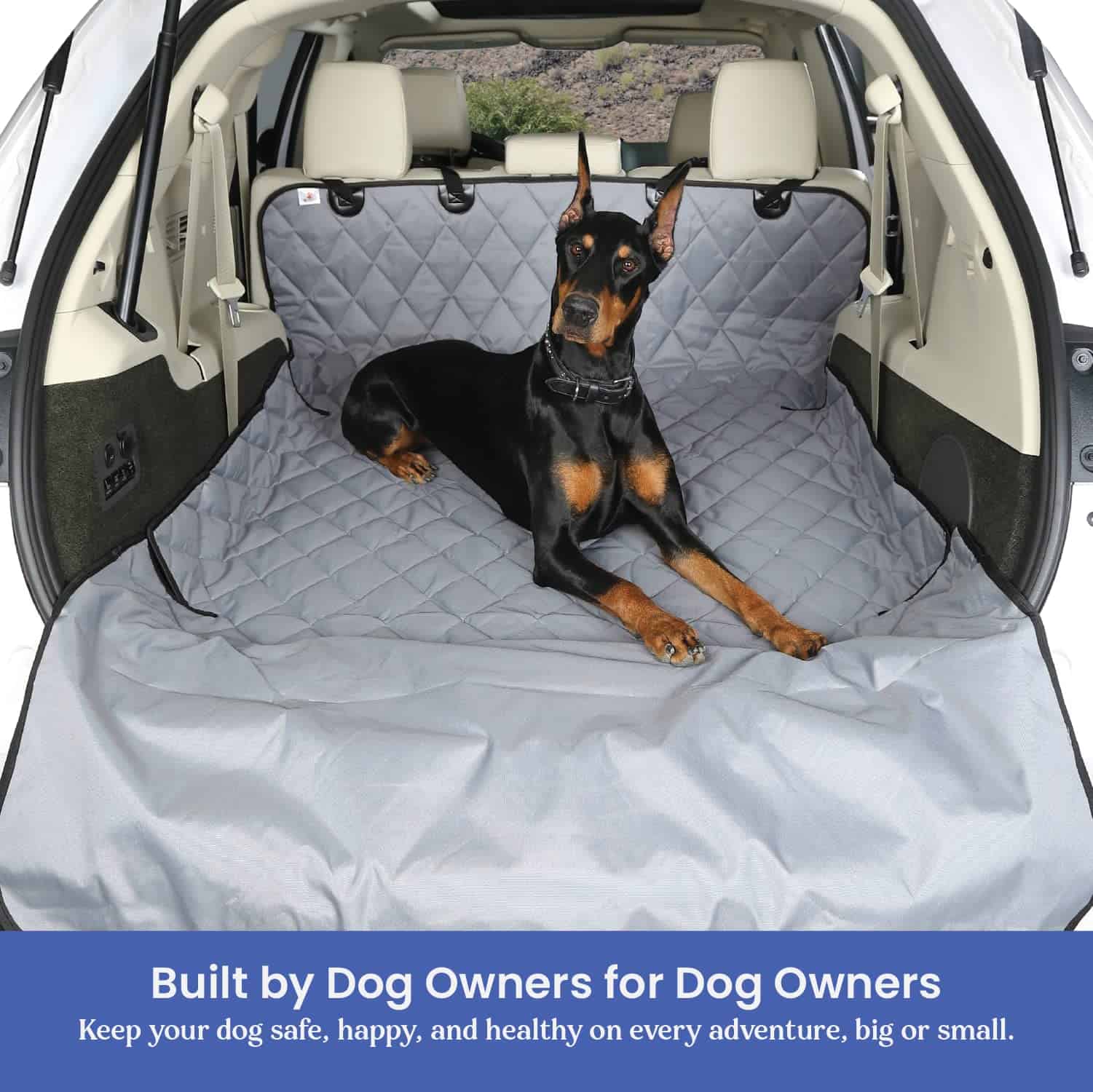 ¡Protege el maletero de tu SUV de pelo, suciedad, derrames y rasguños con el forro de maletero 4Knines! Hecho de poliéster 600D resistente al descoloramiento, con correas UV recubiertas gruesas, clips de nylon duraderos y sin tintes azo ni metales pesados. No es resistente a las mordeduras. ¡No deje a su mascota en su vehículo sin supervisión! Se instala en segundos con clips de liberación rápida; enjuáguelo, límpielo con un paño húmedo o métalo en la lavadora para mantenerlo fresco y limpio.
