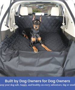 Forro negro para maletero de SUV diseñado especialmente para transportar perros con seguridad y comodidad. Disponible en tamaño pequeño con dimensiones de 46 x 82 pulgadas, este forro se adapta a una amplia gama de vehículos. Confeccionado con poliéster 600D resistente y duradero, el forro tiene correas gruesas con recubrimiento UV, clips de nylon resistentes y no contiene tintes azo ni metales pesados. La capa impermeable y antideslizante K9-Shield garantiza que la parte inferior del asiento permanezca seca y que la cubierta no se deslice. Fácil de instalar con clips de liberación rápida, este forro se puede limpiar con facilidad usando una manguera, un paño húmedo o lavándolo en la lavadora. Proteja su vehículo y a su mascota con el forro para maletero de SUV 4Knines, una solución duradera y resistente desde 2013.