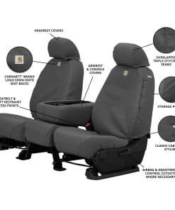 Los Forros de Asiento Personalizados Carhartt SeatSaver de Covercraft son la solución al problema de mantener los asientos de su camión o SUV limpios y protegidos del uso diario y de las aventuras de fin de semana. Hechos de tela resistente de pato, estos forros de asiento personalizados protegen sus asientos del polvo, barro, suciedad, derrames y más. Con la tecnología Rain Defender, se agrega un acabado duradero repelente al agua a la tela para hacerla altamente resistente al agua. Combine estas características con la compatibilidad personalizada y el estilo clásico de Carhartt, obtendrá forros de asiento que lucen geniales y protegen sus asientos de cualquier cosa que les arroje.
