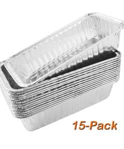 1. El listado es para 15 forros de bandeja de grasa de aluminio desechables para cocinar con leña, Dimensiones: 8.7 x 4.6 x 2.3 pulgadas cada uno.