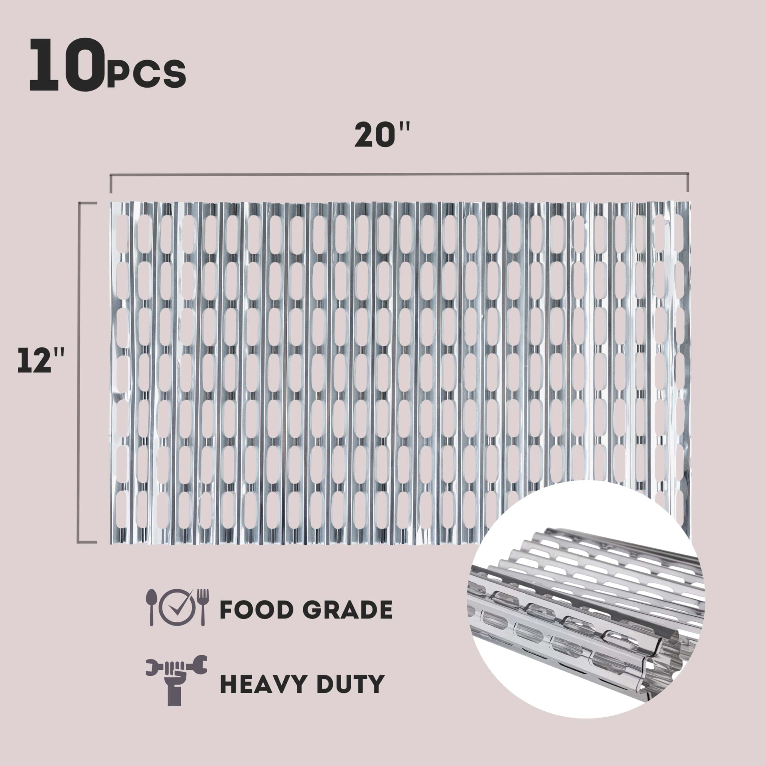 Haz que tu experiencia de parrilla al aire libre sea más limpia, fácil y agradable con nuestros Forros Desechables para Rejillas de Parrilla de Aluminio. Estos forros resistentes están diseñados para proteger tus parrillas de la grasa, residuos de comida y goteos, asegurando una limpieza sin complicaciones. Perfectos para fiestas de barbacoa, parrillas públicas en parques, viajes de campamento y tailgating, estos versátiles forros son un imprescindible para cualquier entusiasta de la parrilla. Fabricados con aluminio duradero y resistente al calor, estos forros resisten las altas temperaturas de la parrilla sin deformarse o rasgarse. Estos forros de parrilla están diseñados para dejar pasar el calor y el humo, asegurando que disfrutes de las mismas marcas de parrilla deliciosas y el sabor ahumado que cocinar directamente en las rejillas sin el desorden. Rociar los forros con aceite asegura que tu comida no se pegue durante la parrilla