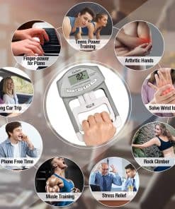 4. Multiusos – Fortalecedores de manos para la fuerza diseñados para uso doméstico, deportivo y clínico, el agarre de mano electrónico es adecuado para mejorar la fuerza y la rehabilitación de lesiones como muñeca, dedo, mano y ejercicios musculares.
