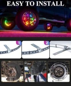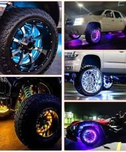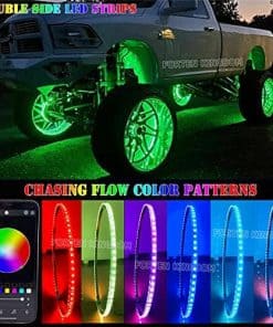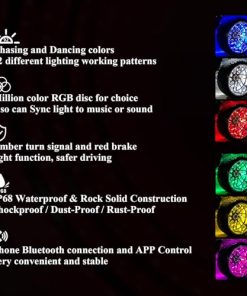 17″ Dream Chasing Color Flow Double Sides illuminated LED Wheel Rings Lights w/Turn Signal and Braking Functionand for Truck All JEEP Offroad BLUETOOTH Controller Material: aviation aluminum holder + RGB 5050 SMD led light strip( 576pcs lamps) Size: 17inch Color: RGB( white/red/blue/green/yellow/purple)Dream color , more than 178 different lighting working patterns….