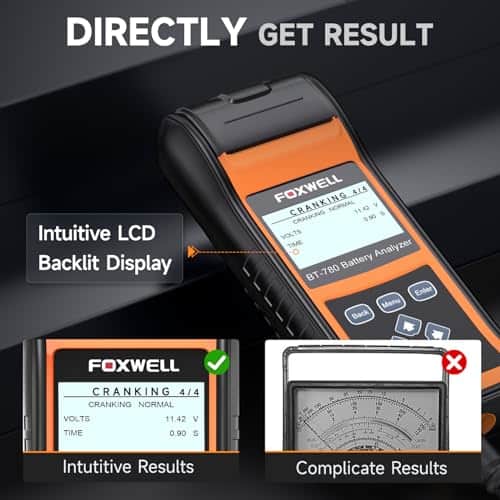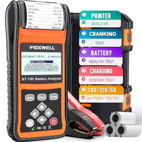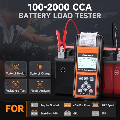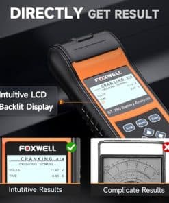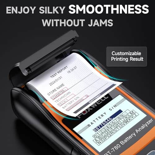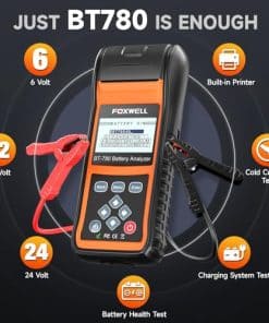Probador de baterías FOXWELL BT780: Tu elección sin problemas. Con funciones Pro y Comprehensive, se adapta a las baterías de plomo ácido de 6V 12V 24V. Conéctate, prueba y obtén resultados precisos sin esfuerzo. El diseño fácil de usar garantiza accesibilidad para todos, y la impresora integrada te permite obtener fácilmente informes detallados en papel. Eleva tu experiencia de prueba de baterías elige la simplicidad, precisión y profesionalismo con el BT780. Asegura el tuyo ahora para una comodidad sin igual.