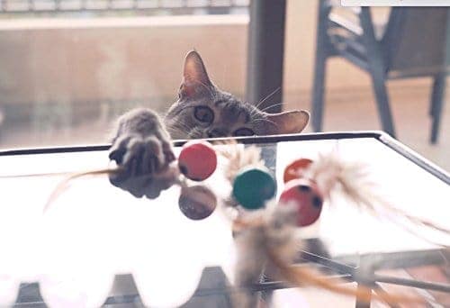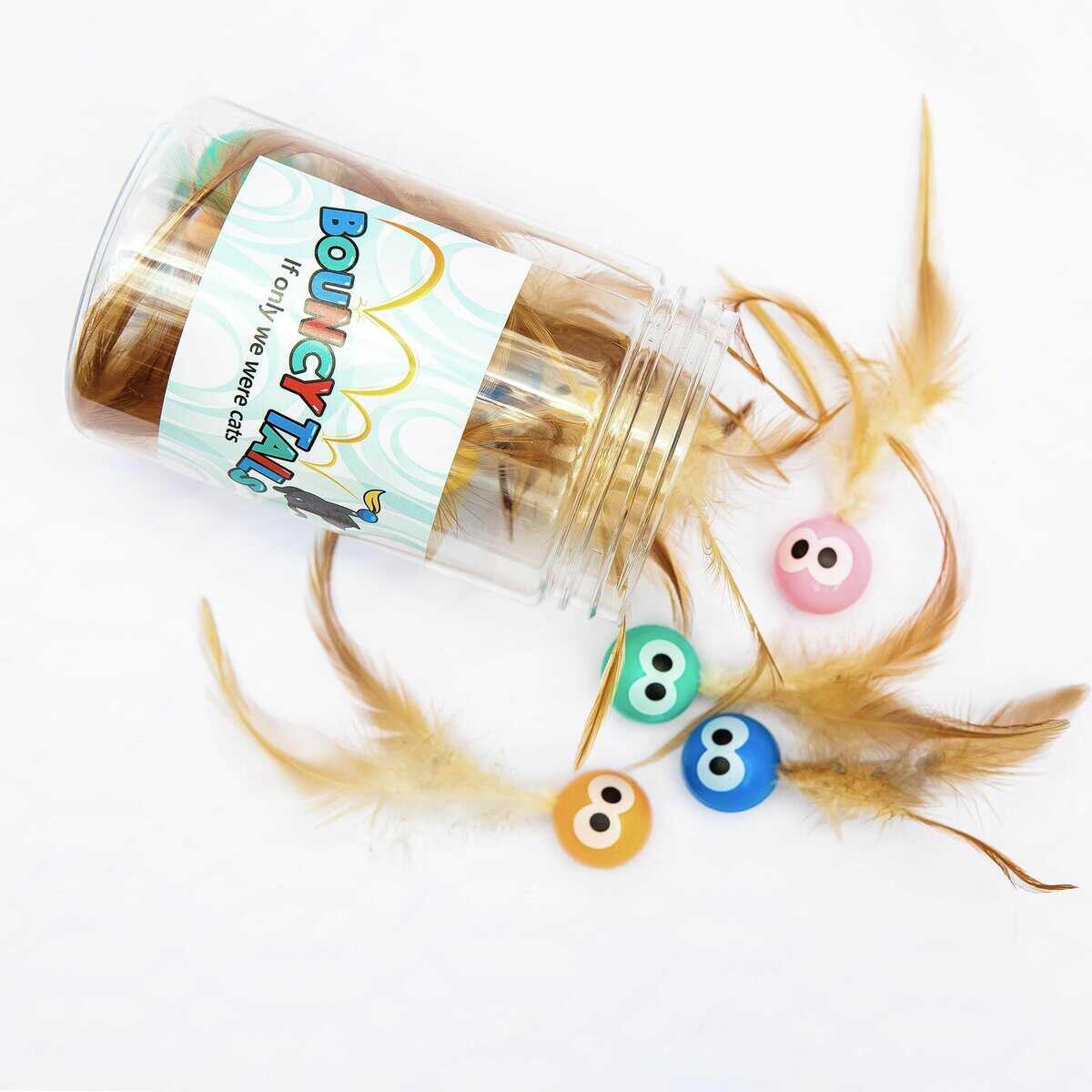 Los gatos disfrutan del tiempo de juego, pero la mayoría de los juguetes no pueden seguir su energía e intelecto. Las Colas Saltarinas son juguetes interactivos para gatos que sacan su lado salvaje. El movimiento es generalmente impredecible debido a las plumas, y no encontrarás un juguete para gatos más saltarín en el mercado. Este juguete es divertido para todos y crea una experiencia de unión divertida tanto para ti como para tus gatos. Características clave: – Movimiento impredecible debido a las plumas – Extremadamente saltarín, asegurando un juego cautivador – Adecuado para juegos interactivos y solitarios basados en el comportamiento de tu gato. Para sacar el máximo provecho de una Cola Saltarina, guárdala después de que tu gato haya terminado de jugar. Algunos gatos disfrutan de deshacer las cosas. Este es un juguete para jugar, no para masticar. Para las mejores prácticas de seguridad, siempre observa el comportamiento de tu gato alrededor de un juguete antes de dejarlo con él. ¡Disfruta! Y gracias por apoyar nuestro pequeño negocio.