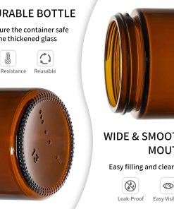 Cada 2 oz ámbar frasco de vidrio para cosméticos se combina con la tapa negra. Fabricado con vidrio grueso de primera calidad, cada frasco está diseñado para durar. Las tapas negras a juego cuentan con forros internos para mayor comodidad. Estos frascos de vidrio ámbar no solo realzan la elegancia de tu tocador, sino que también ofrecen protección contra los dañinos rayos UV, ayudando a proteger tus cosméticos de la exposición al sol y preservar su frescura y potencia durante períodos prolongados. Estos frascos de vidrio de 2 oz son perfectos para una variedad de productos cosméticos. Ya sea lociones caseras, aceites esenciales, manteca corporal, exfoliantes, bálsamos labiales o pomadas, ofrecen una solución elegante para mostrar tus creaciones. Ciertamente, también se pueden utilizar para hacer velas. Las tapas de rosca negras resistentes con forros internos mantienen tus cremas, lociones y pomadas selladas de forma segura, evitando derrames o fugas durante los viajes o el almacenamiento. Limpiar estos frascos de vidrio es muy sencillo: simplemente saca los forros, lava el vidrio con agua tibia y jabón, y seca completamente. Perfectos para viajar, caben fácilmente en tu bolso o maleta.