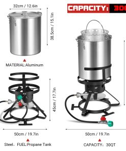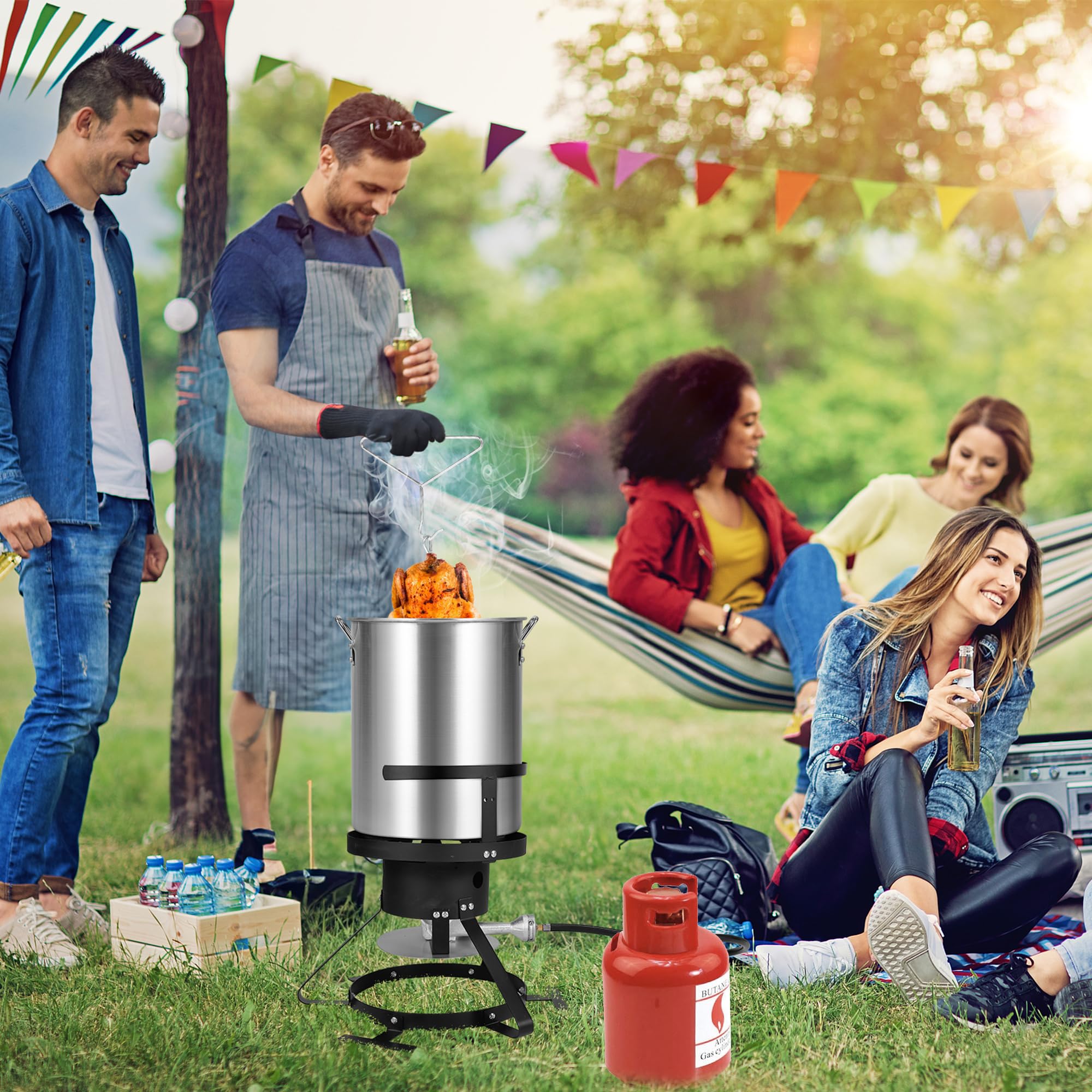 5. DISEÑO RESISTENTE Y SEGURO: El soporte de acero soldado proporciona un soporte estable, evitando que se incline durante la cocción a alta temperatura. ¡Disfruta de tu freidora de pavo de forma segura, incluso en entornos exteriores!