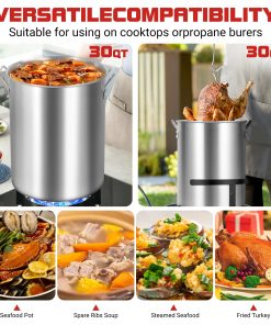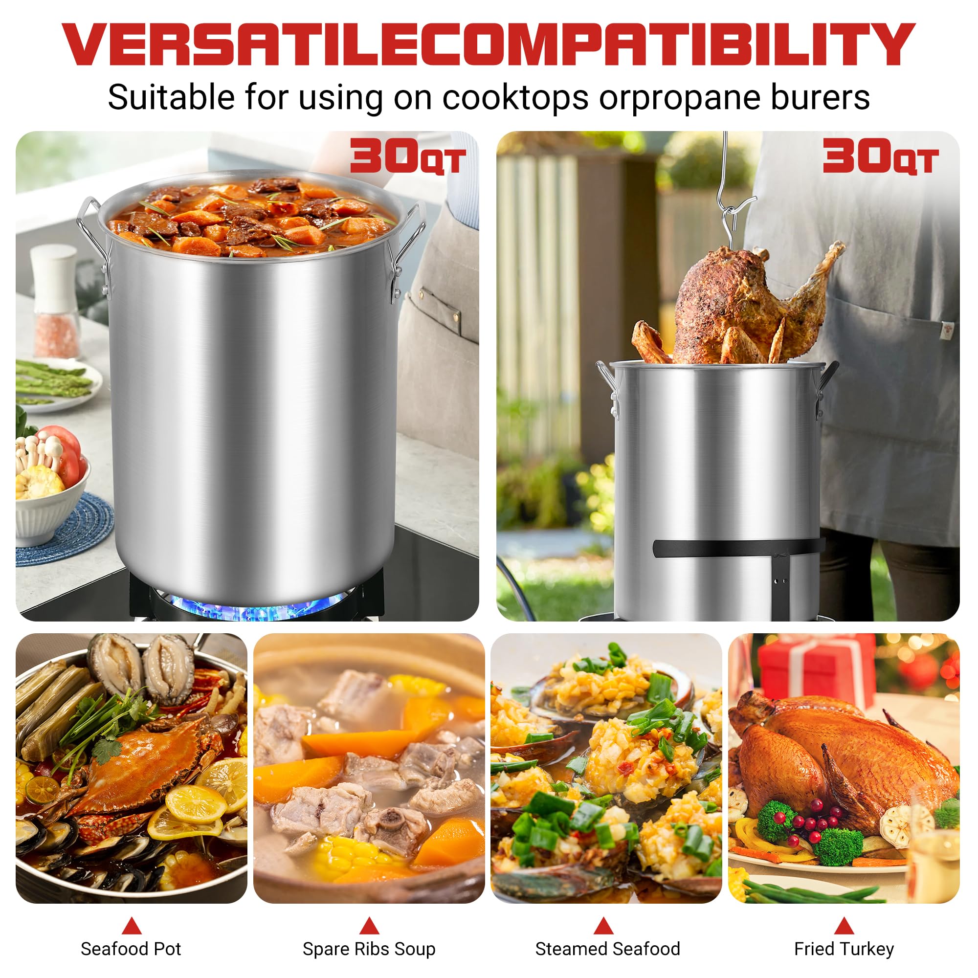 2. OLLA VERSÁTIL: La olla de 30 Qt. es perfecta para freír un delicioso pavo, hervir mariscos o hacer sopas abundantes. ¡Ideal para cualquier aventura culinaria al aire libre en el patio, en la cola de un coche o en la naturaleza!.