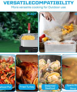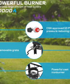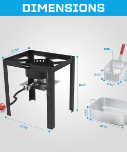 18QT FREIDORA AL AIRE LIBRE DURADERA: La freidora de pescado FireRiot de 18QT está construida con materiales premium, con una olla de aluminio ligera y un cuerpo de metal resistente a la oxidación. Fácil de limpiar, esta freidora de propano con cesta y cabezal de quemador de hierro fundido resistente garantiza una durabilidad excepcional, haciéndola perfecta para quemadores de propano de alta intensidad para cocinar al aire libre. DISEÑO DE CESTAS DOBLES: Prepare fácilmente dos platos a la vez con nuestro set de freidora al aire libre, que cuenta con cestas coladoras dobles para cocinar sin problemas. Nuestra freidora doble equipada con asas de silicona resistentes al calor y un agarre ergonómico garantiza seguridad y comodidad. Perfecta para frituras de pescado, barbacoas, camping o fiestas, es una solución que ahorra tiempo tanto para reuniones familiares como para chefs profesionales!. CALOR IMPRESIONANTE Y AYUDANTE PROFESIONAL: Esta freidora de aire de propano cuenta con un cabezal de estufa de hierro fundido duradero con una potente salida de calor de 50,000 BTU. Equipado con un regulador certificado por CSA y componentes minuciosamente inspeccionados, es ideal para acampar, hacer tailgating o cocinar en el patio trasero, garantizando frituras y hervidos de mariscos impecables en todo momento!. COCCIÓN DE PRECISIÓN CON TERMÓMETRO: A diferencia de las freidoras estándar, la freidora profunda FireRiot viene con un termómetro de acero inoxidable para lecturas precisas de la temperatura del aceite. Logre condiciones óptimas de fritura sin esfuerzo, mejorando sus resultados culinarios y asegurando alimentos perfectamente fritos. FÁCIL DE ENSAMBLAR: El kit de freidora al aire libre cuenta con un diseño que requiere un ensamblaje mínimo. Simplemente ajuste los componentes del quemador de hierro fundido y el mango de la freidora con cesta, ¡prepárelo y estará listo para cocinar. Disfrute de una preparación sin problemas!