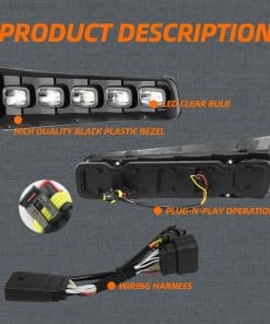 White Daytime Running lights Fog Light Kit Dos tonos de iluminación led blanco/ámbar le dan a tu camioneta el resplandor más vibrante y potente. Esta luz de niebla para parachoques tiene 5 focos y está rodeada por un acabado brillante de pintura negra brillante, dándole a tu Ford Raptor un aspecto regordete y bonito. Las luces de niebla LED con señales de giro ámbar están fabricadas con plástico ABS de alta calidad para mejorar la resistencia y durabilidad, reducir el consumo de energía, ahorrar energía en general y tratamiento de oxidación superficial. Asegura que el led no se sobrecaliente y tenga una vida útil más larga. Resistente al agua, a los golpes y a la corrosión. El conjunto de luces de niebla delanteras LED 2PCS de fácil instalación se monta fácilmente en el parachoques de tu Raptor sin necesidad de modificaciones, está incorporado en la caja de control para un cableado más sencillo pero garantiza una salida estable, En el cableado, el negro es el polo negativo, el rojo es el polo positivo para las luces de marcha diurna, y el amarillo y el azul son los cables positivos para las señales de giro izquierdo y derecho. conserva el clip en la parte trasera para un buen ajuste al abrocharlo, y también viene con cinta adhesiva de doble cara automática para asegurar mejor la luz de niebla. Recibirá un par de luces de niebla delanteras LED. Le brindaremos un servicio de un año, si encuentra algún problema, contáctenos a tiempo, su satisfacción es nuestra motivación, le responderemos en un plazo de 24 horas.