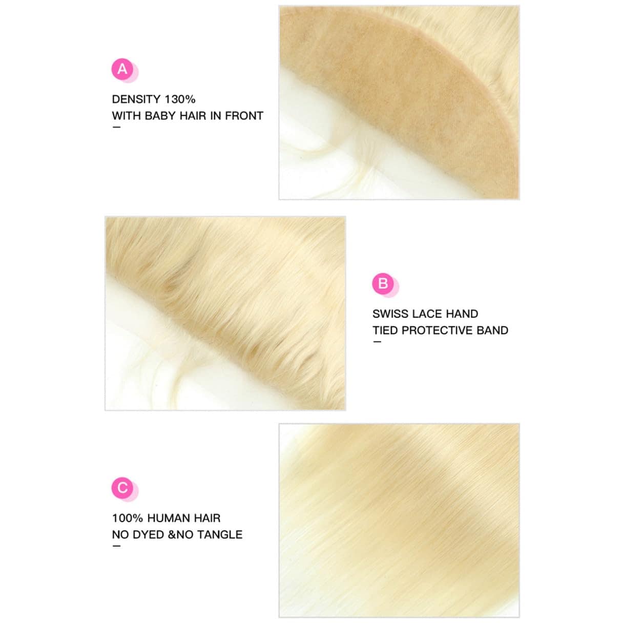 Frontal de Encaje 613 13×4 Recto Rubio Miel, Cabello Humano