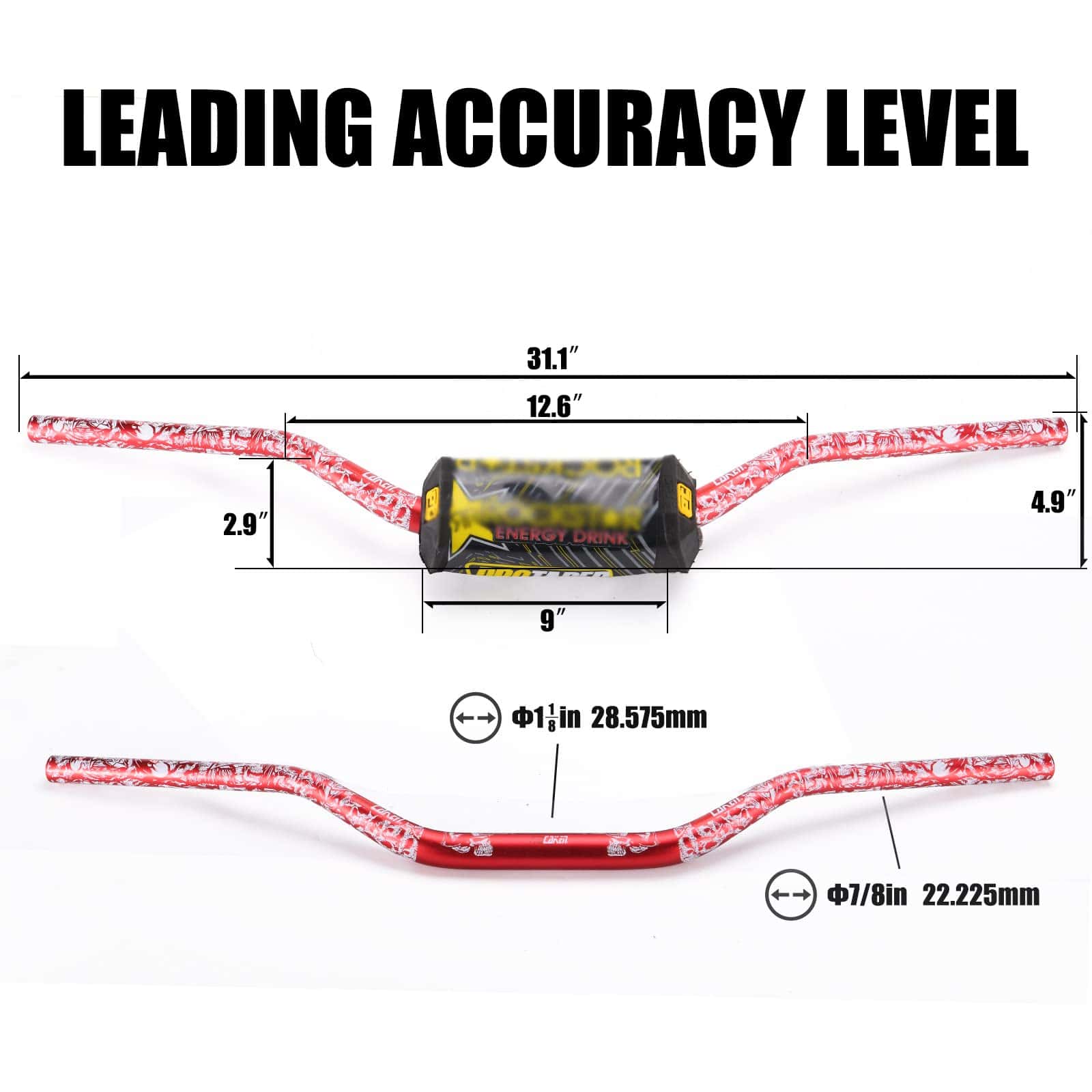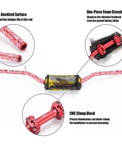 Los manillares de 7/8″ utilizan barras de soporte resistentes y almohadillas de espuma integradas. Para muchos pilotos, especialmente aquellos que están acostumbrados a usar soportes transversales, este es el diseño favorito; el soporte ayuda a aumentar la rigidez mientras proporciona comodidad en la curva.