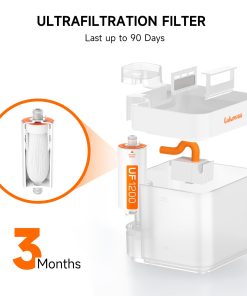 Fuente de Agua Automática para Mascotas Lulumiao, Purificación del 99.99% y Filtro de Reemplazo. Asegura que tus mascotas siempre tengan agua fresca y purificada con esta fuente de agua automática. Incluye un innovador filtro de membrana de ultrafiltración que filtra impurezas tan pequeñas como 0.1 m, para garantizar que tus mascotas beban agua verdaderamente saludable. Este paquete incluye 3 filtros de reemplazo para que puedas mantener la fuente funcionando en óptimas condiciones.