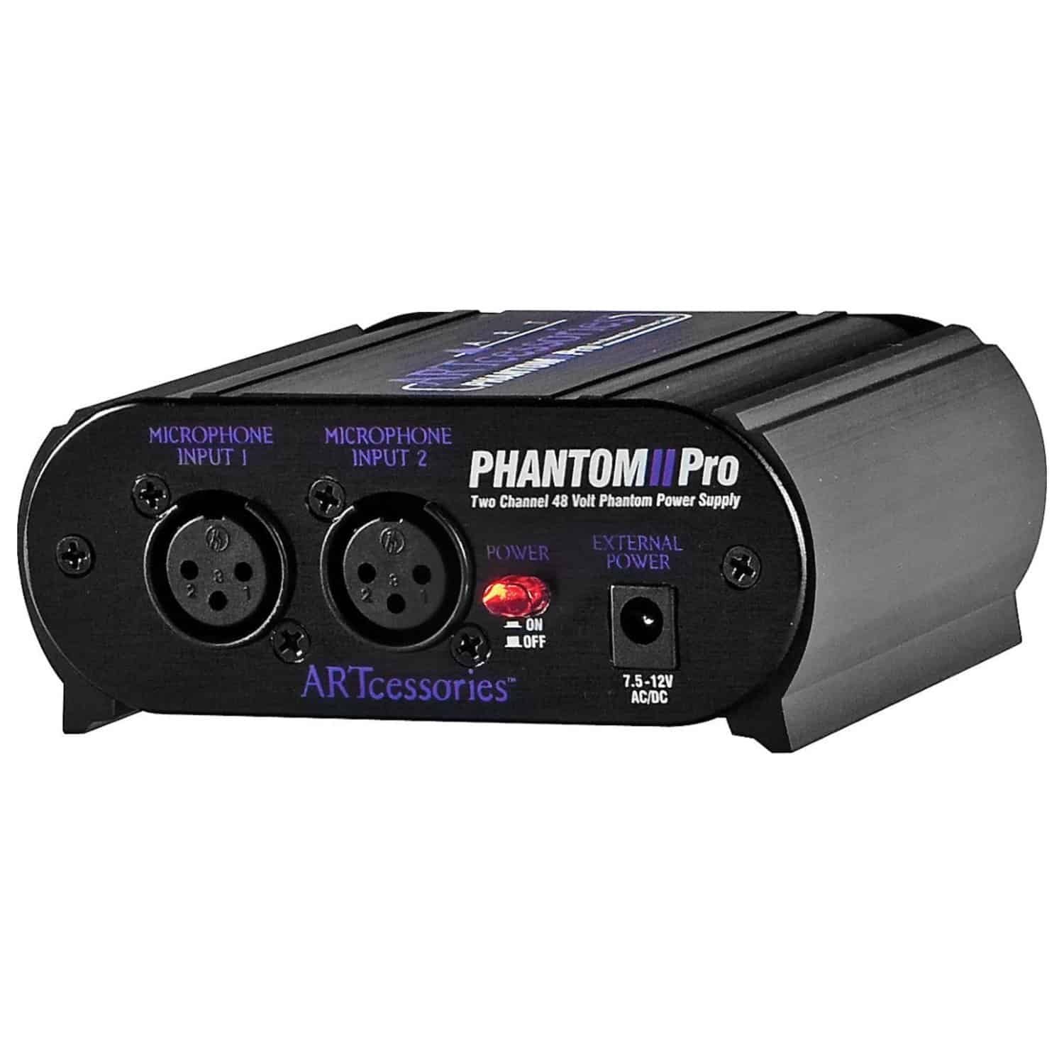 Utilice el ART Phantom II Pro para proporcionar a sus micrófonos de condensador la energía de phantom limpia y confiable que necesitan. Esta fuente de alimentación de phantom dual es la forma ideal de añadir 48 voltios de energía de phantom a un canal de mezclador o interfaz de audio que no la tiene disponible. Simplemente mantenga el ART Phantom II Pro en su estudio o kit de sonido en vivo, en caso de que necesite ser creativo con la forma en que conecta los canales a su mezclador o interfaz. Construido en un resistente estuche de aluminio extruido, el eficiente Phantom II Pro incluso se puede alimentar con batería para una total comodidad sobre la marcha. Por supuesto, para sus sesiones prolongadas, también hay una opción de alimentación de CA disponible en el ART Phantom II Pro. Características de la Fuente de Alimentación de Phantom de 2 Canales ART Phantom II Pro: Fuente de alimentación de phantom dual Proporciona 48 voltios de energía de phantom Dos entradas XLR (hembra) y dos salidas XLR (macho) Puede ser