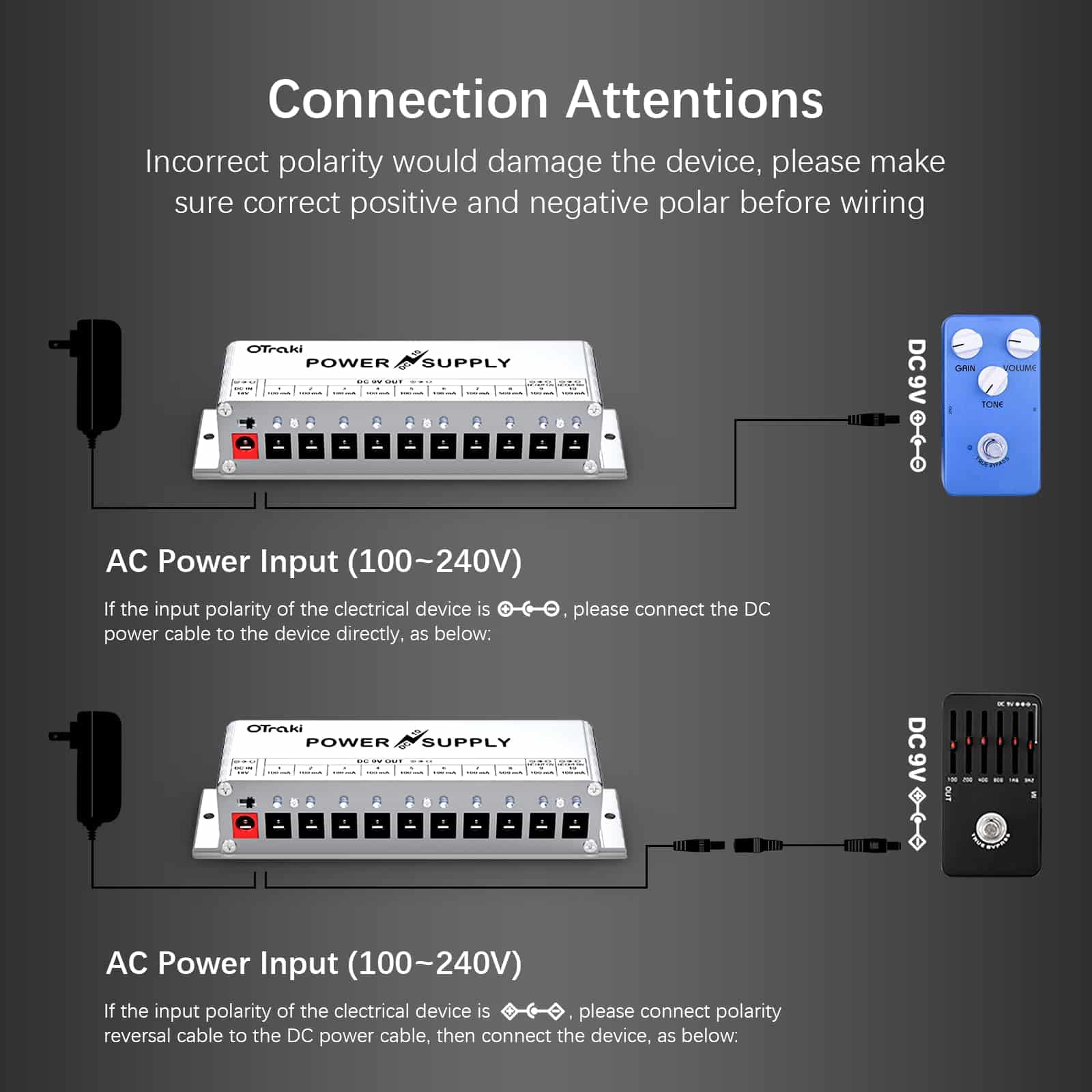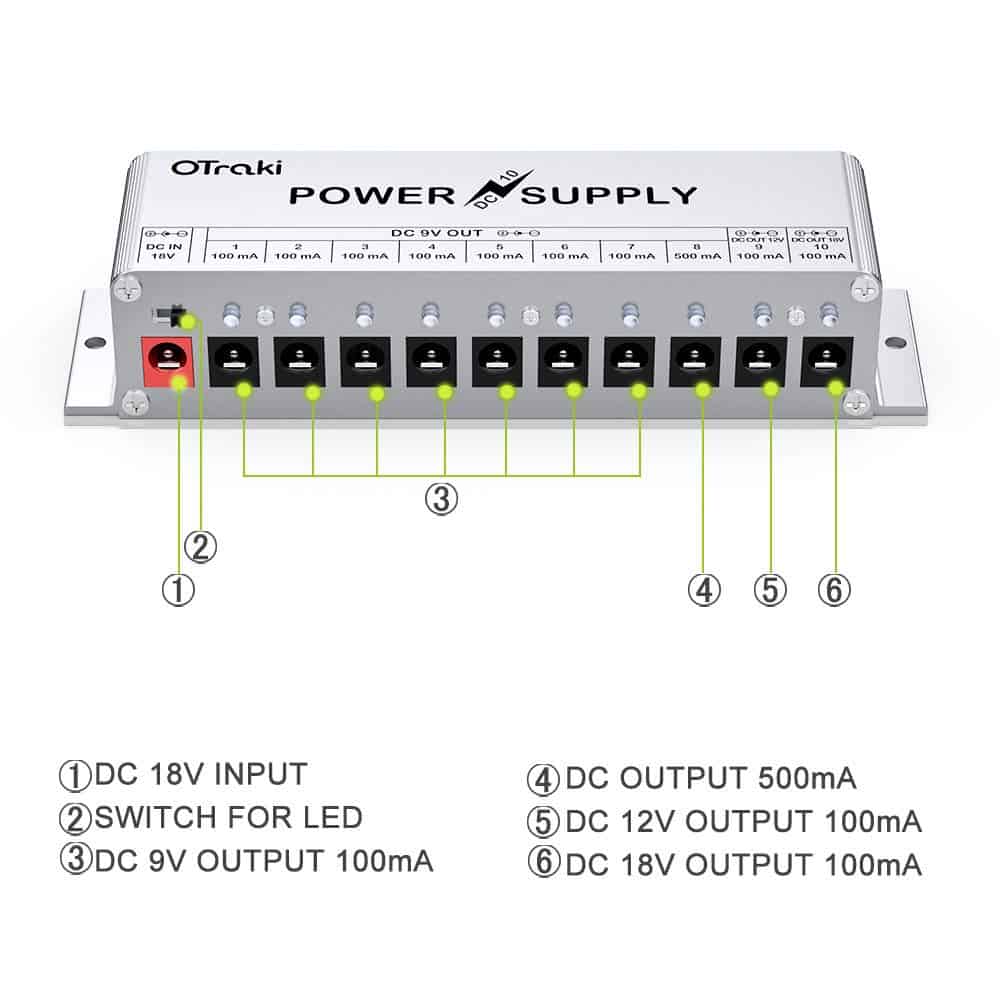 Fuente de Alimentación para Pedal de Guitarra OTraki con 10