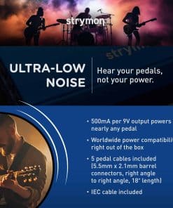 La fuente de alimentación para pedales de guitarra Zuma R300 de Strymon es ideal para músicos que buscan una solución de energía confiable y de alto rendimiento para sus pedales de efectos. Con una potencia de 500mA por salida, esta unidad proporciona una energía estable y limpia para tus pedales de 9V, 12V y 18V, asegurando que suenen tal como fueron diseñados. El diseño de doble aislamiento elimina eficazmente problemas de bucle de tierra y ruido de línea de CA, manteniendo el sonido puro de tus pedales. Su perfil ultra bajo permite que se ajuste fácilmente debajo de casi cualquier pedalera, mientras que su capacidad de expansión facilita la integración en un sistema más grande. Con el Zuma R300, tus pedales obtendrán la potencia y versatilidad necesarias para alcanzar su máximo potencial artístico. ¡Adquiere la fuente de alimentación Zuma R300 y lleva tu sonido al siguiente nivel!