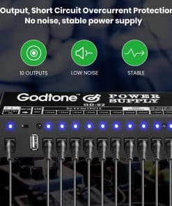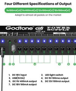 Nombre: Fuente de Alimentación para Pedales de Guitarra 10 Salidas Aisladas DC para 9V/12V/18V, 100mA 400mA, con USB(5V2A) GD-02