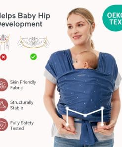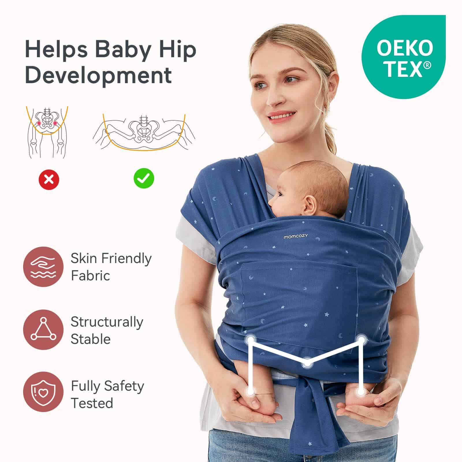 4. Tela Cómoda y Amigable con la Piel La tela del fular portabebés está hecha de material 95% poliéster, 5% spandex, cómoda y transpirable, suave y amigable con la piel; Fácil de usar y muy ceñida, permite a los bebés sentir el aliento de Mamá y Papá de cerca, haciendo que los niños sientan que están disfrutando de un abrazo cómodo; Un entorno cómodo mejora la sensación de seguridad de su bebé y ayuda a fomentar una relación cercana entre padres e hijos, lo que lo hace ideal para mamás y papás que son nuevos en productos para bebés.