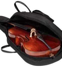 ESPECIFICACIONES: Tipo de Producto: Funda Blanda para Violonchelo Estilo: Acolchado Grueso de 12mm Tamaño: 4/4 Tamaño Completo Material Exterior: Exterior de Nylon 600D impermeable no abrasivo Material Interior: Forro interior de nylon negro, amplio almacenamiento de accesorios Material del Mango: Asas de agarre de cuero suave 1 Bolsillo para Arco Frontal con Cierre de Gancho y Lazo 1 Pequeño Compartimento Frontal para Accesorios 1 Bolsillo Trasero para Guardar Partituras 3 Asas de agarre Peso: 3.6 libras Dimensiones Totales: 48.5 L x 18 A x 5 P INCLUYE: 1x funda de violonchelo acolchada de 12mm
