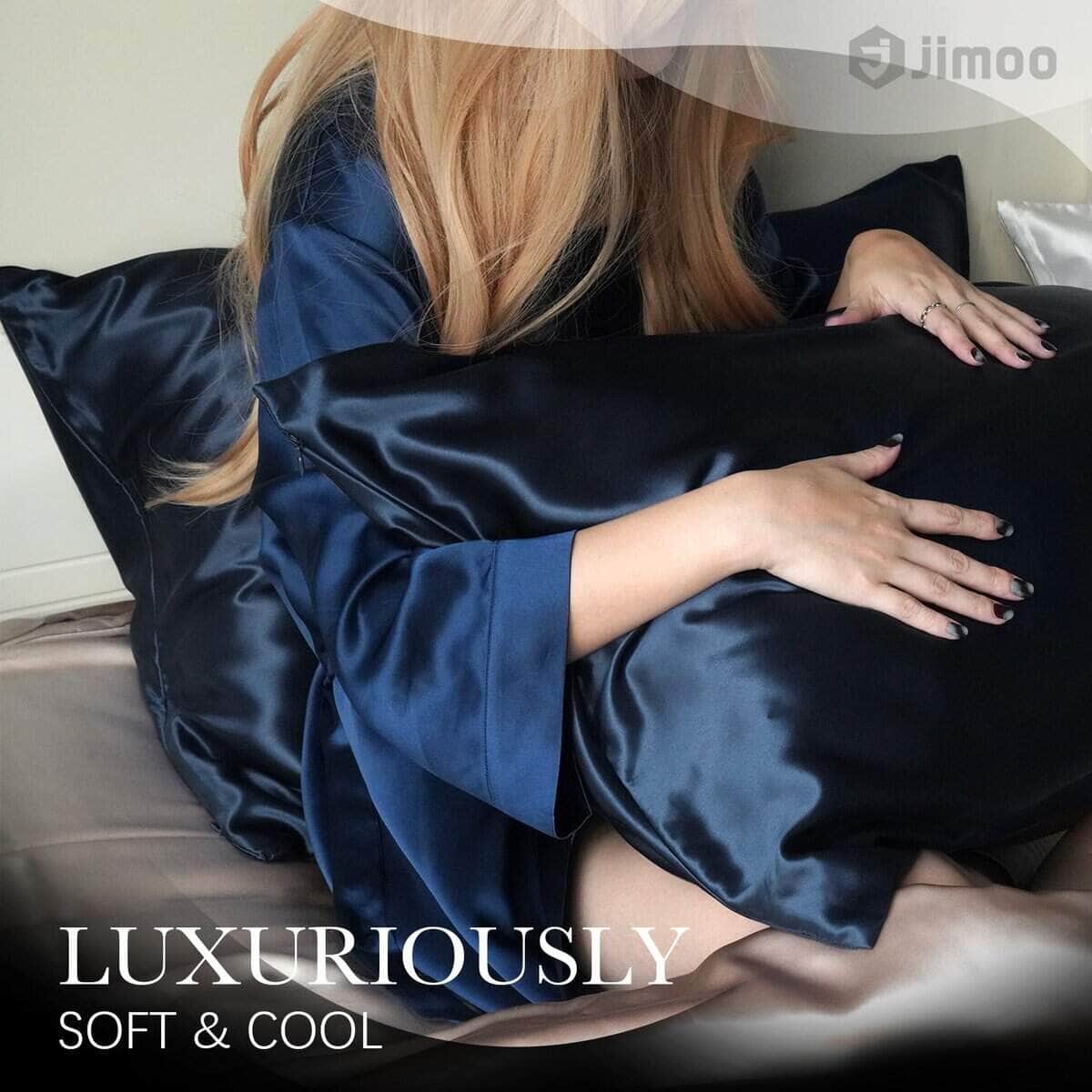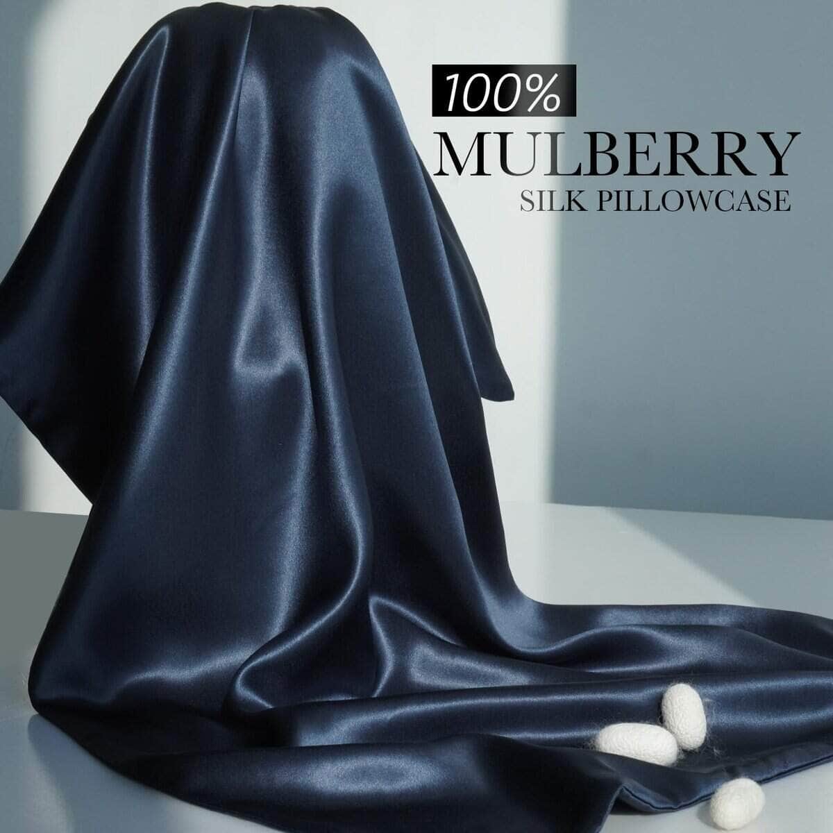 Funda de Almohada 100% Seda de Morera para -Azul Marino