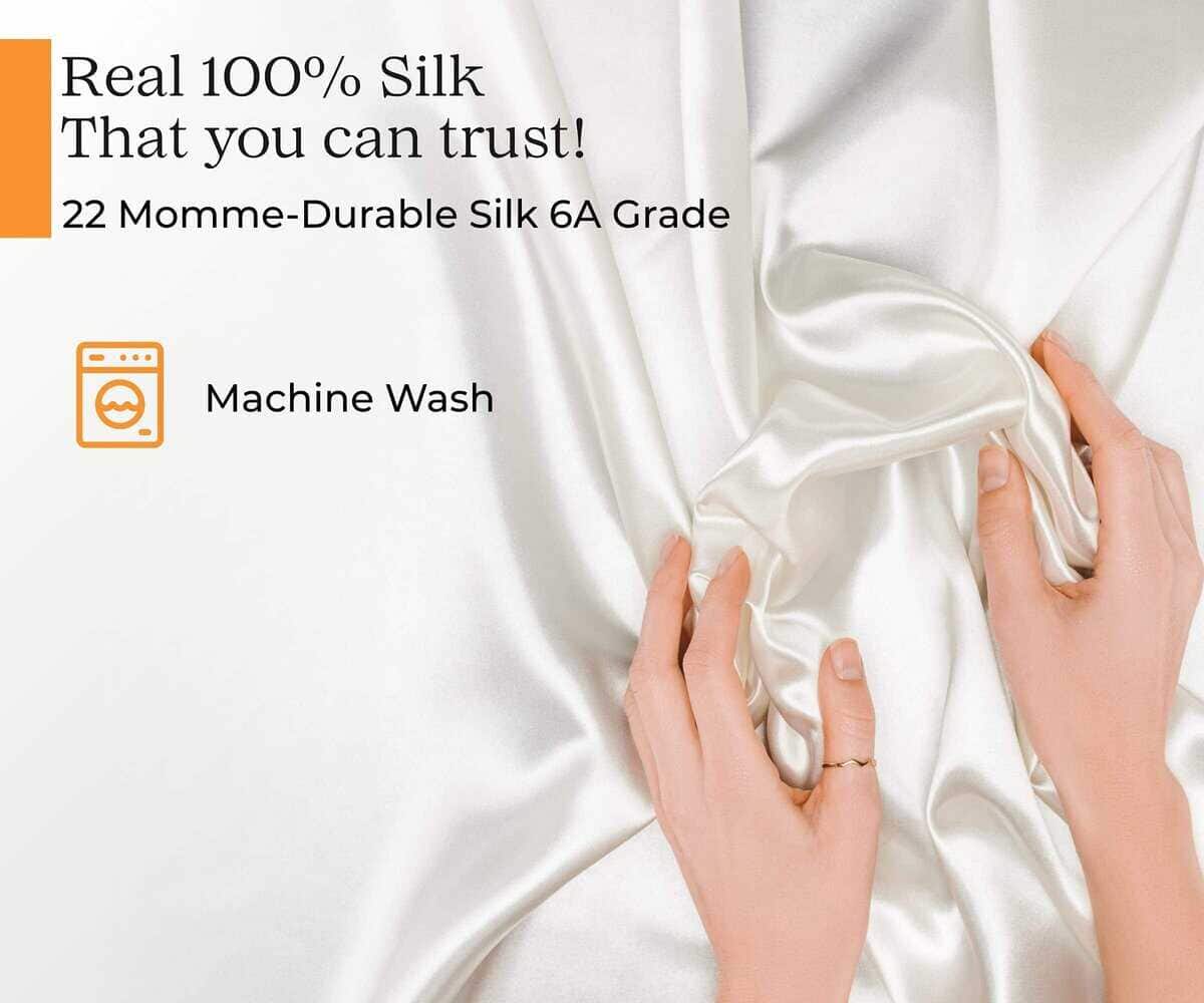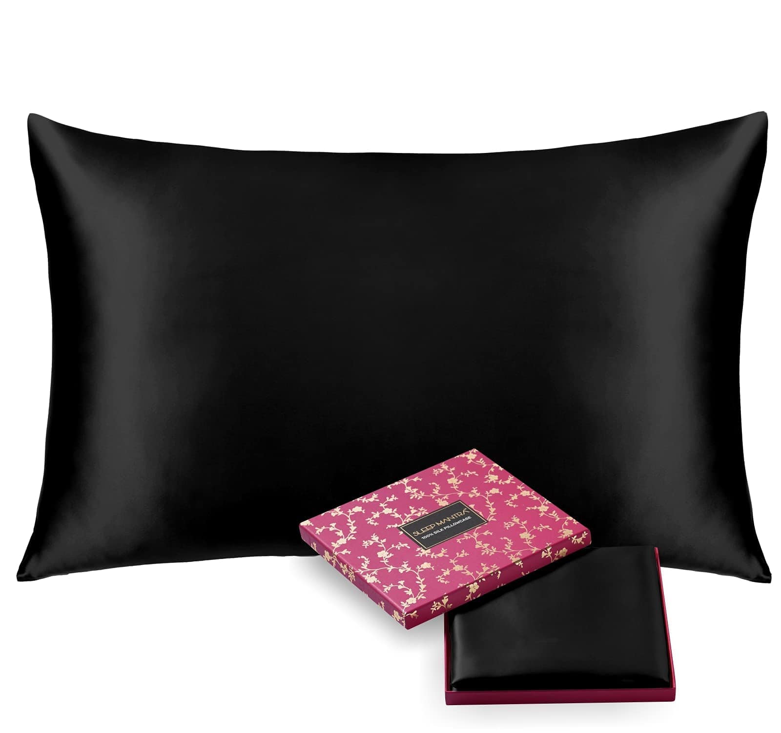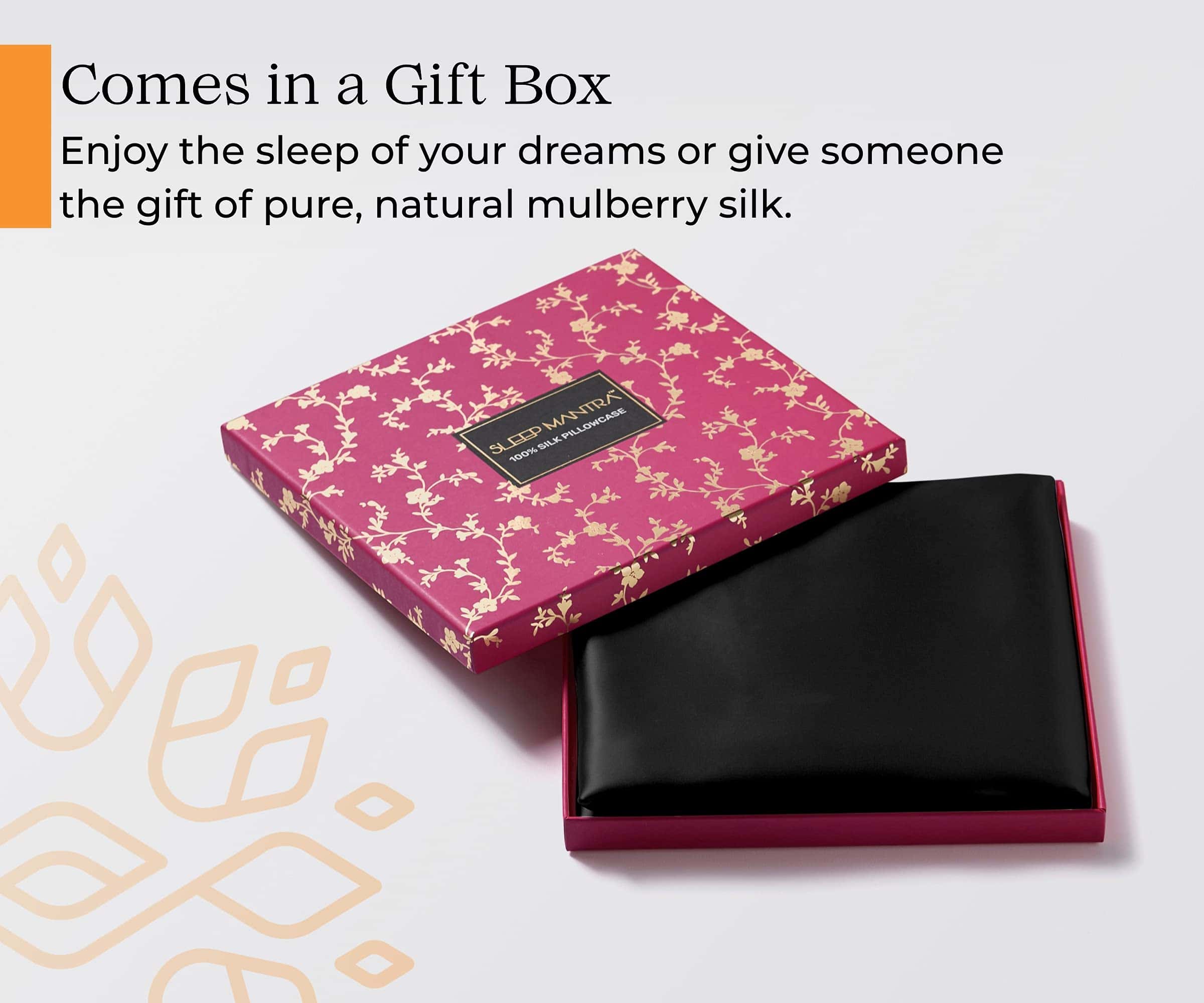 Funda de Almohada 100% Seda de Morera para la Salud del Cabello y la Piel, Cremallera Oculta, 22 Momme, Ambos Lados Suaves, Transpirable y Natural, Lavable a Máquina (Queen, Negro). No todas las fundas de almohada de seda son iguales. Nuestra lujosa funda de almohada de seda de morera pesa 22 momme, pero eso no debería ser el único factor a considerar al realizar la compra. El tejido francés charmeuse es lo que hace que seamos especiales, lo que garantiza que nuestra funda de almohada nunca pierda su brillo ni se vuelva opaca incluso después de varios lavados. Incluye una funda de almohada de seda Queen que mide 20″ L X 30″ W con cierre de cremallera oculta. Perfecto para todo tipo de piel, incluida la piel sensible. Nuestra funda de almohada de seda orgánica se desliza contra la piel para una sensación suave y sedosa. No importa cuánto te muevas, nuestra funda de almohada de seda para el cabello y la piel evita la formación de líneas faciales y mantiene a raya las arrugas y el envejecimiento. Nuestra funda de almohada de seda real reduce el encrespamiento, las puntas abiertas, los tirones, la rotura y la sequedad para darte el cabello más hermoso. Nuestra funda de almohada de seda 100% se puede lavar en la lavadora gracias a su grosor y durabilidad perfectos. No se desvanece, arruga ni encoge, por lo que puedes usarla durante varios años. Viene con garantía limitada de 365 días. ¡Adelante, prueba nuestra funda de almohada de seda pura diseñada para darte el sueño de belleza de tus sueños, todas las noches!
