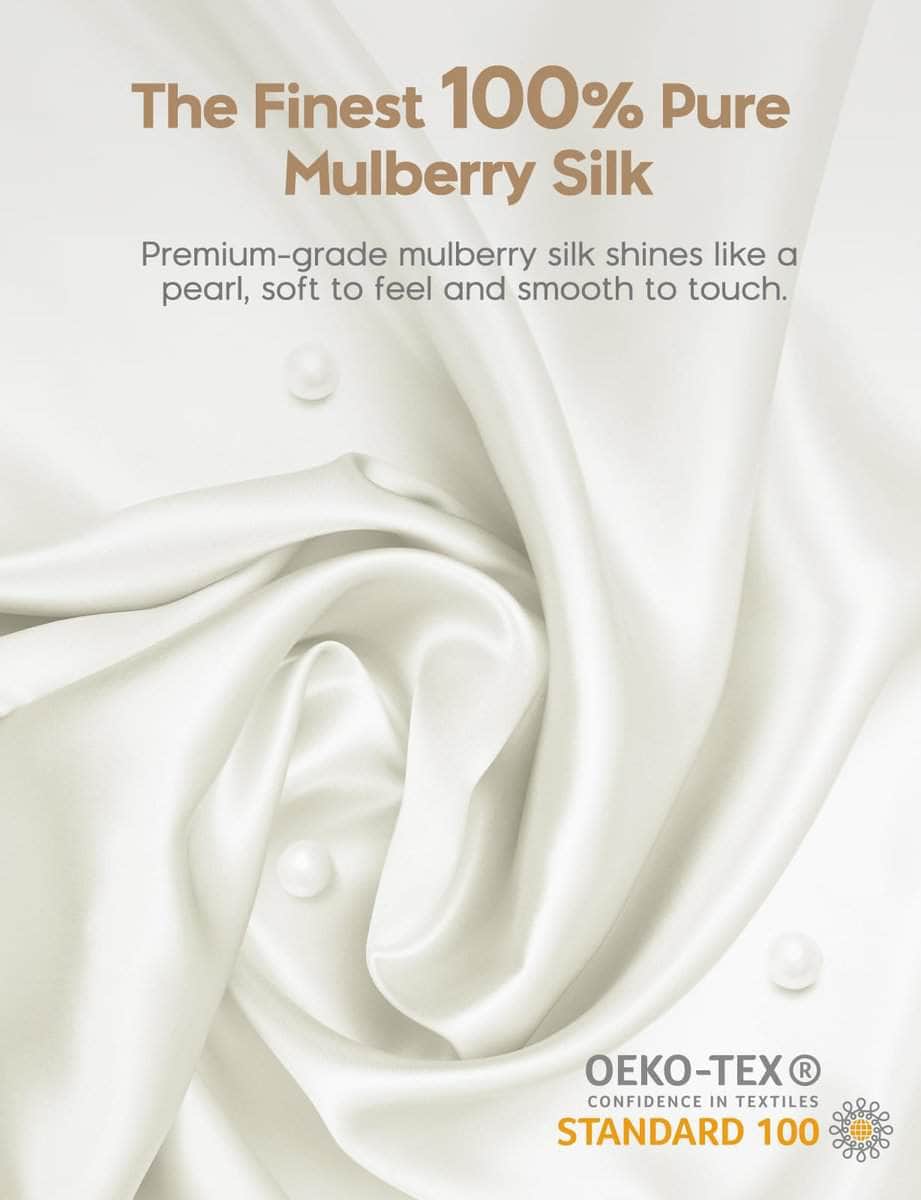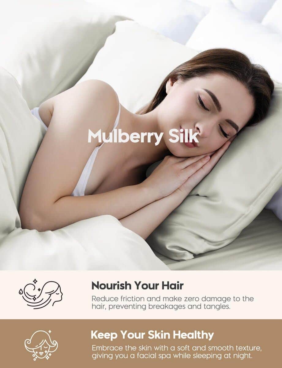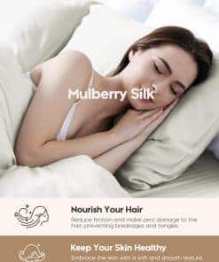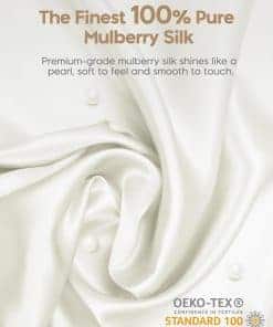 22 Momme 100% Seda de Morera Pura. Creemos que las fibras cultivadas de la naturaleza son perfectas tal como son; por lo tanto, la seda conserva su pureza, permitiéndote experimentar el maravilloso poder otorgado por la naturaleza. Sea honrada como Reina de las Fibras, la seda pura de grado 6A contiene proteína natural y 18 aminoácidos esenciales que tu piel y cabello aman. Descubre el Secreto de Belleza. Di no a los pliegues matutinos con una lujosa funda de almohada de seda que cuenta con una textura suave y lisa. Su coeficiente de fricción es bajo en un 7.4% – el más bajo entre las fibras. El poder mágico de la seda se manifiesta al hidratar la piel, suavizar las líneas finas y reducir las arrugas. Refresca tu cutis para saludar cada mañana de buen humor. Beneficia tu Cabello Brillante. Da la bienvenida a tu rutina de cuidado nocturno con nuestra funda de almohada de seda de morera enriquecida con proteínas naturales, librando a tu cabello de puntas abiertas, frizz y sequedad. Con una reducción promedio de fricción del 43%, la seda obra su magia para preservar los aceites naturales del cabello, dejándolo suave y glamoroso incluso después de una noche entera de vueltas y vueltas. Siéntete Fresca a la Hora de Dormir. Las propiedades reguladoras naturales de temperatura de la seda natural hacen que se sienta fresca en verano y cálida en invierno. Crea el máximo confort al dormir mientras la seda acaricia gentilmente tu piel tierna. Olvídate de las noches inquietas y sudorosas y saluda la bienaventuranza de la frescura de nuestras fundas de almohada de seda. Duerme en paz por la noche y despiértate sintiéndote renovada. Regalo Exquisito para Mujeres Elegantes. La seda natural con propiedades naturalmente hipoalergénicas es amigable para la sensibilidad de la piel y las alergias. Ya sea que te regales a ti misma o busques un regalo para una mujer importante en tu vida, las fundas de almohada de seda son una opción considerada para todas las edades y tipos de piel. Recompénsate con una mejor experiencia de sueño después de un día ajetreado.