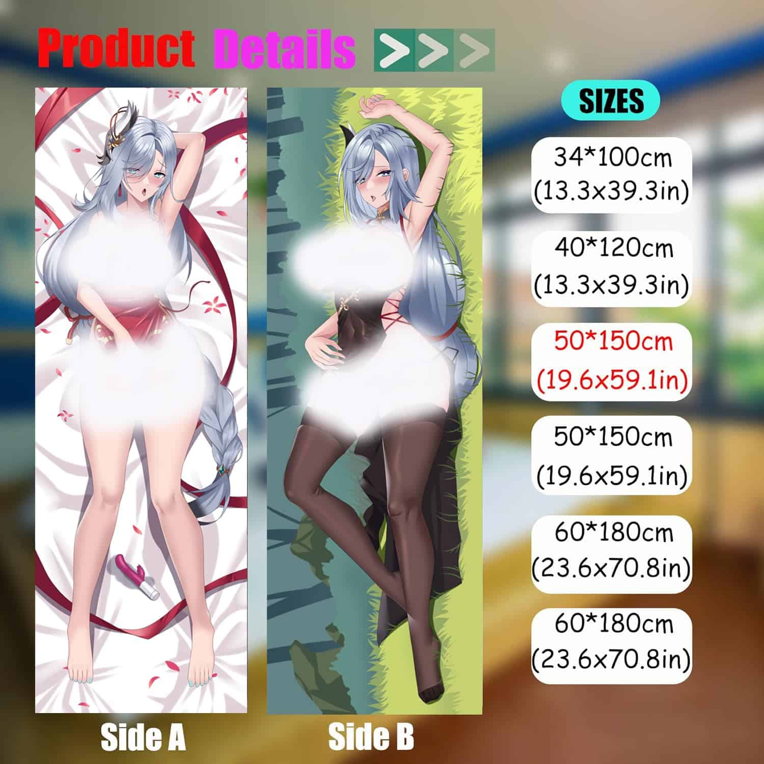 1. Tamaño de cuerpo real: 150 cm x 50 cm / 59 pulgadas x 19.6 pulgadas. Funda de almohada para cuerpo abrazable de anime, diseño con personajes de anime Genshin Impact Shenhe. Funda de almohada solamente, sin inserto de almohada o relleno.