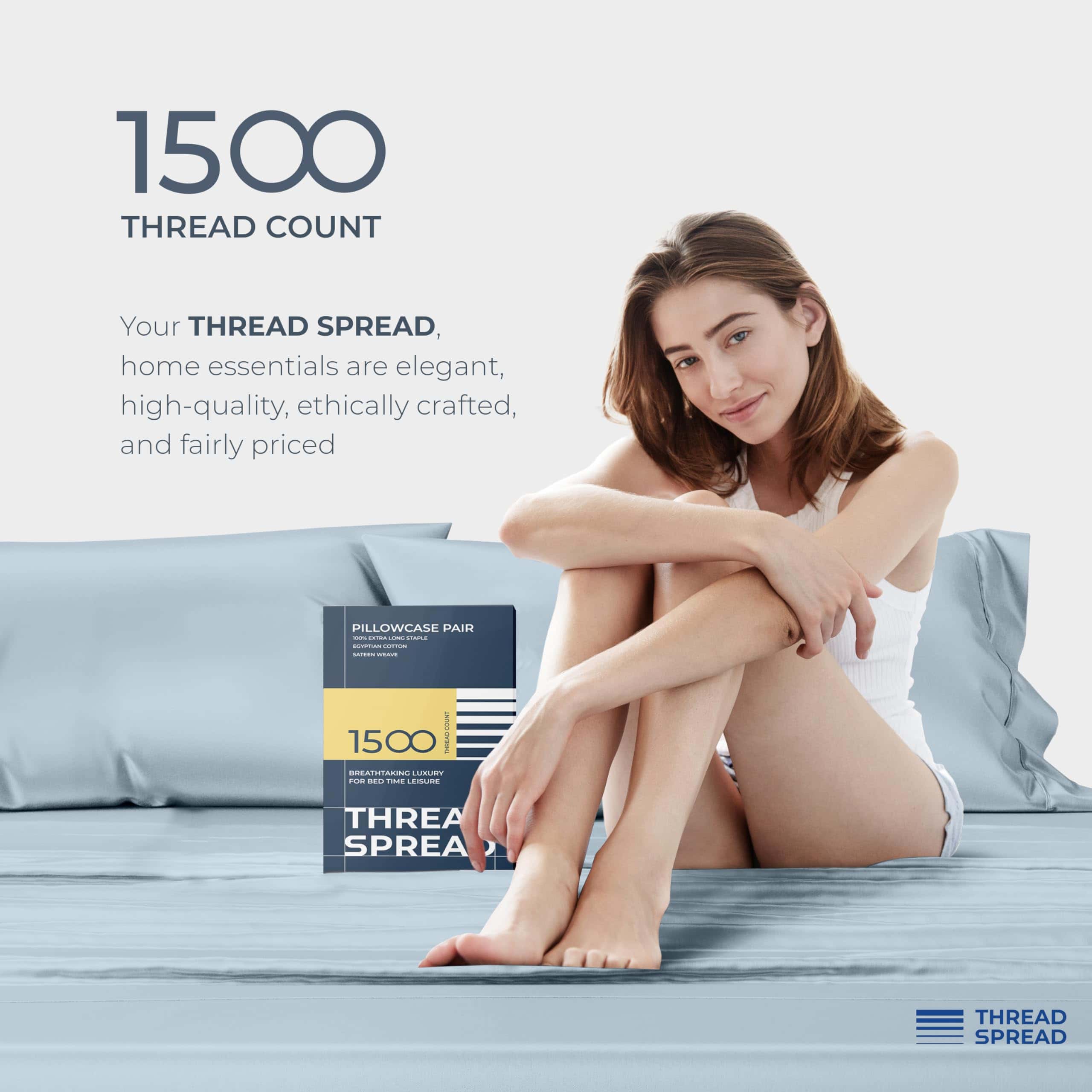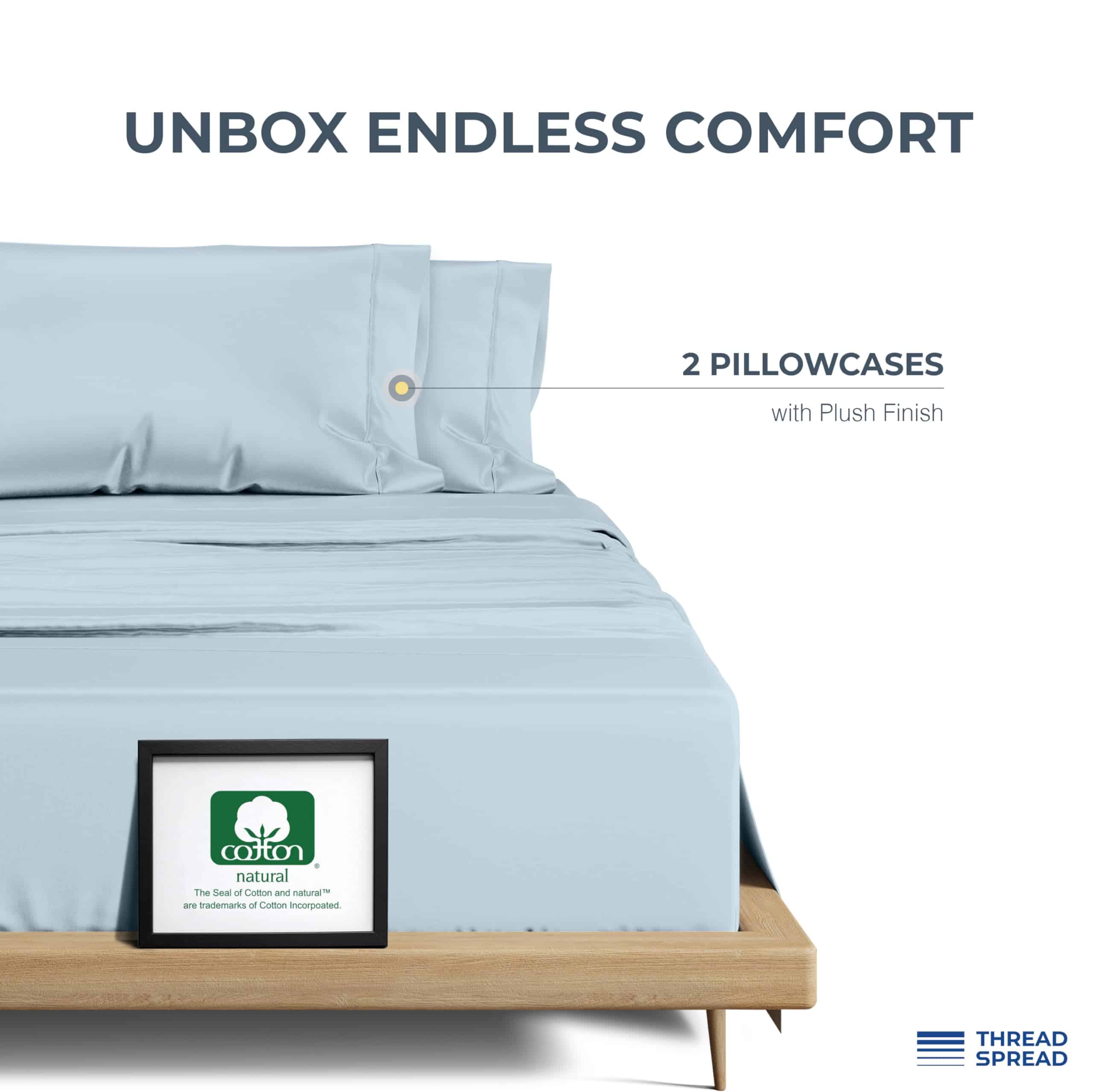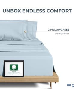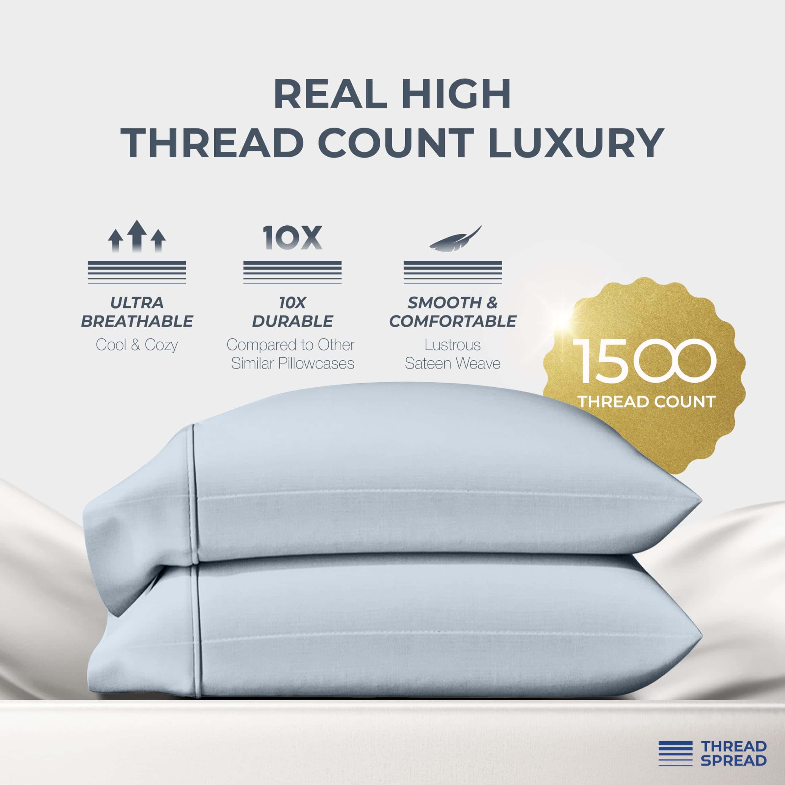 Funda de Almohada de Algodón Egipcio 100% de 1500 hilos para Almohadas Estándar/Queen Set de 2 – Azul Claro