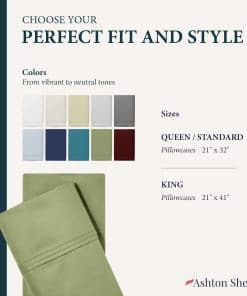 En Ashton Sheets, elegimos hilos más largos y finos, que luego son mercerizados para mejorar su lustre, absorción de tinte y resistencia. Esto garantiza que nuestro set de 2 fundas de almohada king size conserven su color brillante al lavar y no se encojan ni formen bolitas. Lavar a máquina en agua tibia en un ciclo suave. Secar a baja temperatura. Debido a sus propiedades naturales, las fundas y protectores de almohada de algodón son propensos a arrugarse. Pásales la plancha después para obtener una apariencia suave.