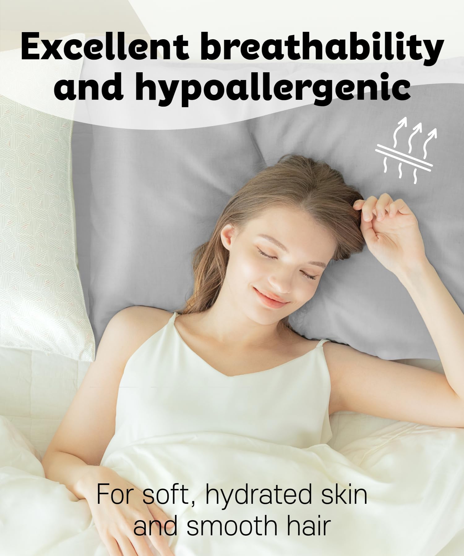 Funda de Almohada de Colágeno – Fundas de Almohada Suaves para Cabello y Piel-Humectación Superior a la Funda de Seda de Satén/Funda de Almohada de Seda de Morera, Fundas de Almohada Refrigerantes para los que Duermen Calientes, Tamaño Queen (29.3″x19.7″), Gris. Transforma tu piel durante la noche – Infundida con hilo de colágeno, nuestra funda de almohada retiene 4 veces más humedad que el algodón o la seda, eliminando la sequedad y las arrugas. ¡Despierta con una piel radiante y joven todos los días! Cabello sin Frizz, Glamoroso – Nuestra lujosa mezcla de Lenzing Tencel y hilo de colágeno garantiza un cabello suave como la seda y sin enredos. No más roturas, no más cabello revuelto. Solo cabello hermoso y manejable cada mañana. Mantente Fresco Toda la Noche – ¡Aquellos que duermen calientes, regocíjense! Las propiedades naturales de enfriamiento de nuestra funda de almohada y su tejido superior que absorbe la humedad te mantienen perfectamente cómodo, asegurando que duermas como la realeza. Suave, cómodo e hipoalergénico – Perfecto para pieles sensibles, nuestro tejido de colágeno calma la sequedad y mima tu piel, ayudándote a lograr una tez sana y radiante sin esfuerzo. Eco-lujo en su máxima expresión – Hecho de escamas de pescado recicladas y Lenzing Tencel sostenible, nuestra funda de almohada es 100% biodegradable. Date el lujo sin culpa mientras haces tu parte por el planeta. Lujo sin esfuerzo con cierre de sobre – Con un conveniente cierre de sobre, nuestra funda de almohada permite cambios fáciles y un ajuste seguro. Experimenta el lujo de una funda de almohada fresca y suave con un esfuerzo mínimo, asegurando una higiene del sueño impecable todas las noches. Perfección Coreana Hecha a Mano – Elaborada en una fábrica de ropa de cama coreana de primer nivel, nuestra funda de almohada ofrece una suavidad y durabilidad exquisitas. Experimenta la cúspide de la belleza coreana todas las noches que duermes. El Regalo Definitivo de Lujo – Presentada en un empaque 100% biodegradable, nuestra funda de almohada es el regalo perfecto para aquellos que valoran la elegancia, la comodidad y la responsabilidad ambiental. Haz que sus noches sean inolvidables