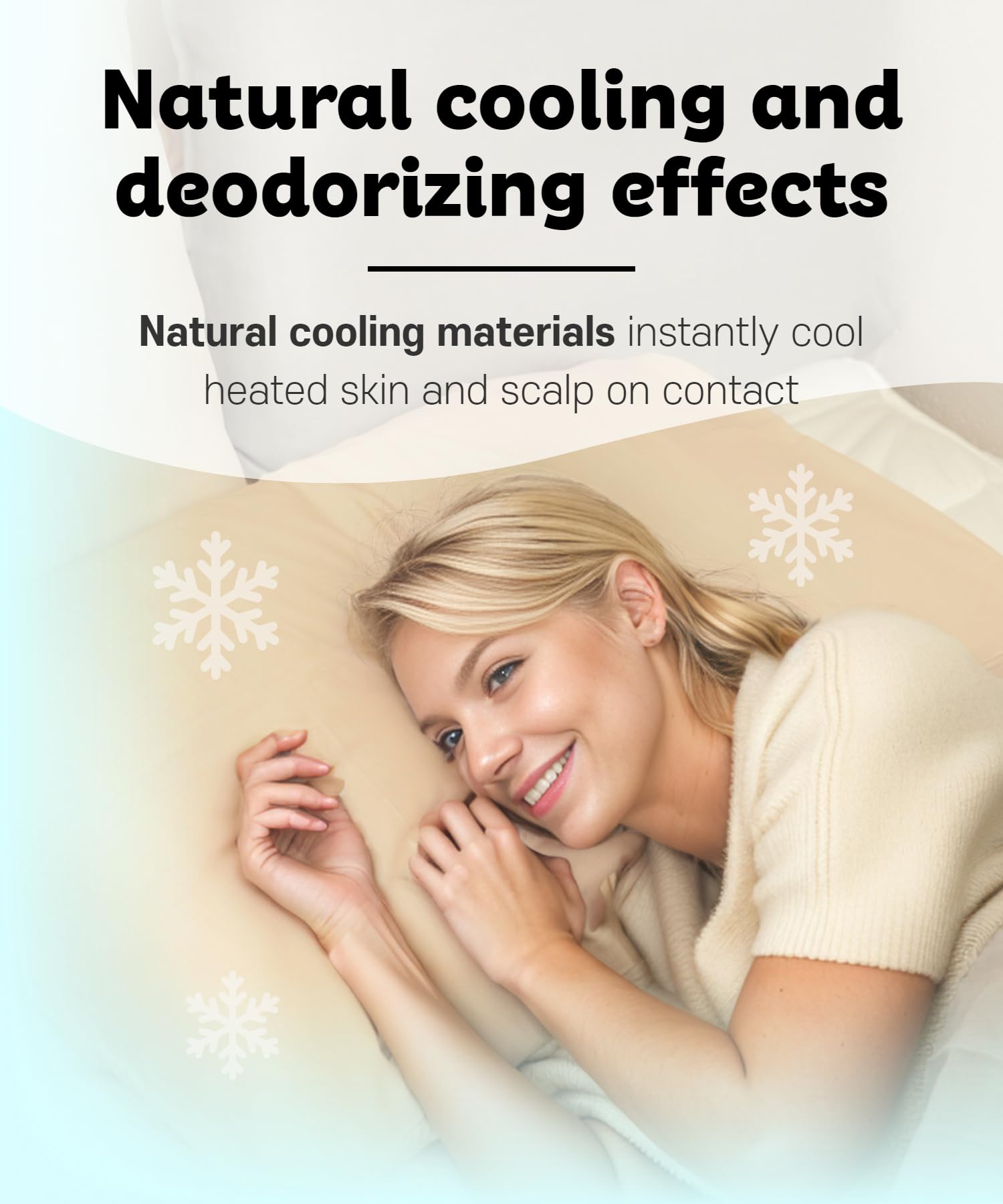 3. Mantente Fresco Toda la Noche – ¡Aquellos que duermen calientes, regocíjense! Las propiedades naturales de enfriamiento de nuestra funda de almohada y su tejido superior que absorbe la humedad te mantienen perfectamente cómodo, asegurando que duermas como la realeza.