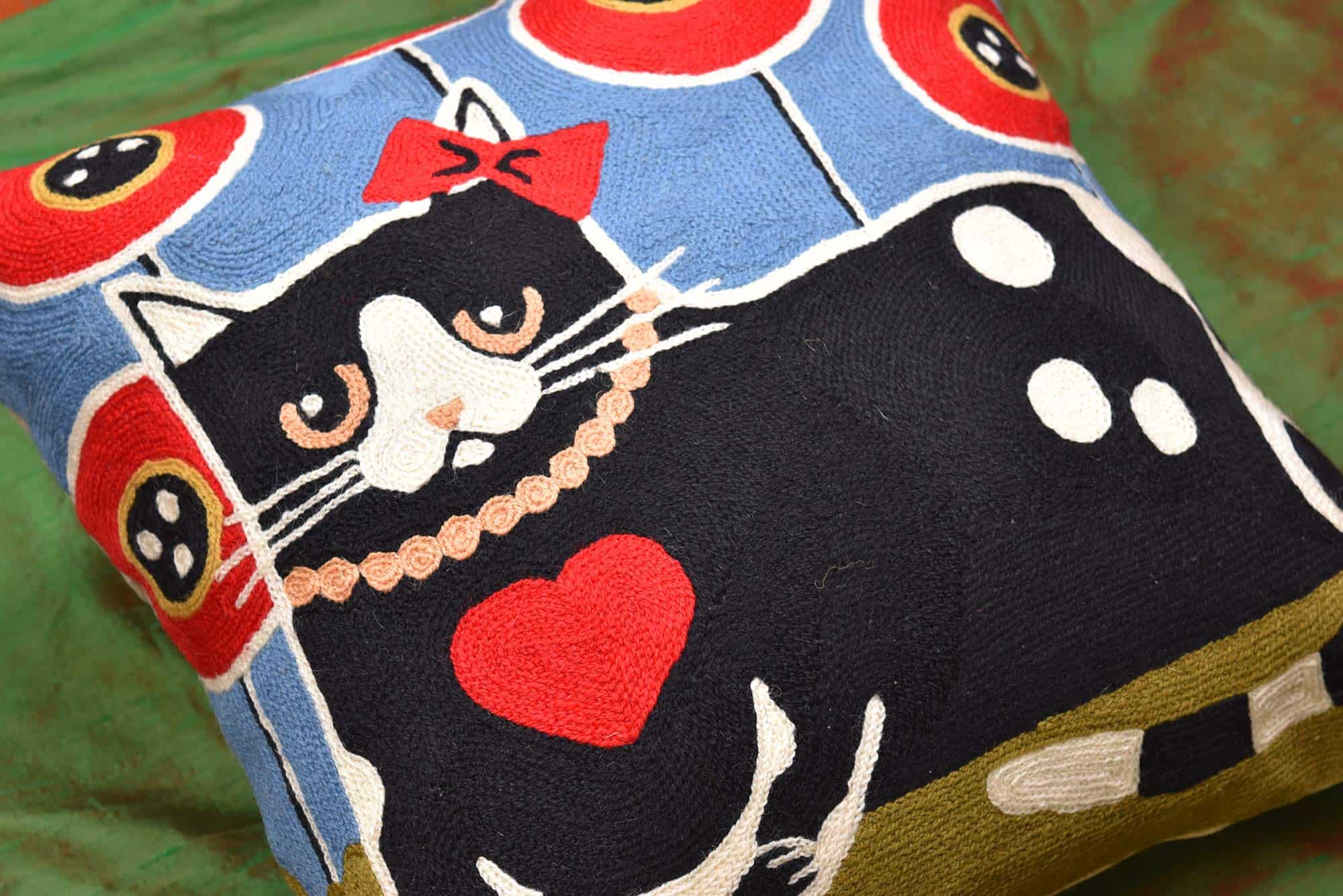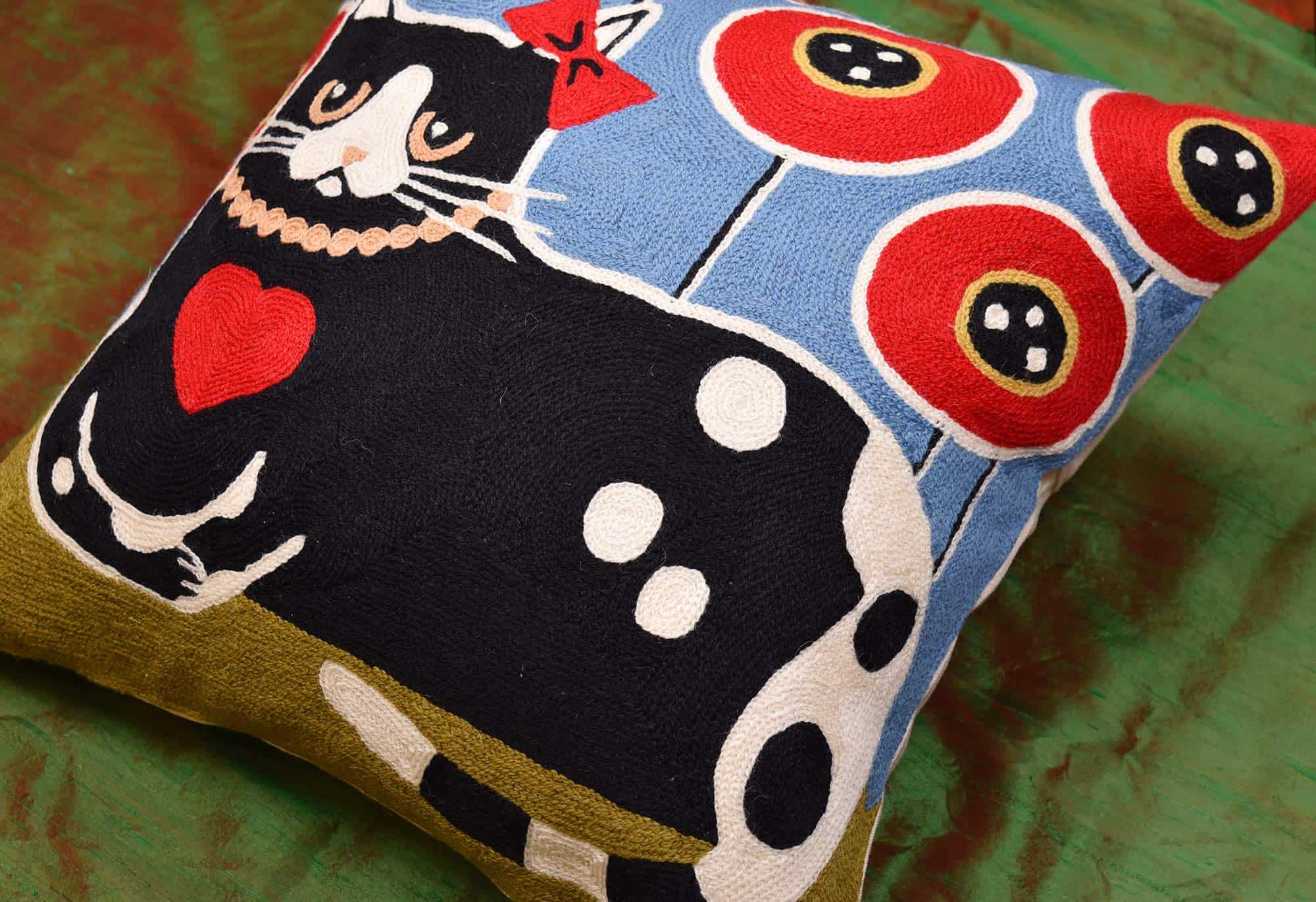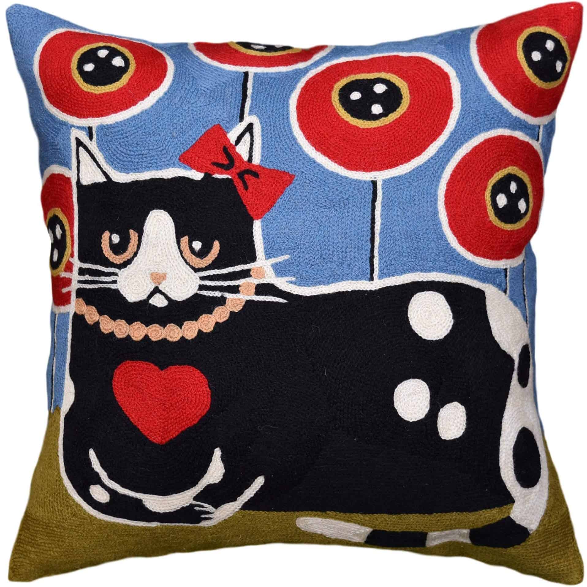 Estas almohadas de gato negro unirían los elementos artísticos de cualquier habitación, creando un diseño armonioso, un aire perfecto de sofisticación. Inspirado en el arte caprichoso, este cojín de gato sería un regalo de inauguración de la casa perfecto para un amante de los gatos. Cierre de cremallera trasera. Tamaño de la funda de almohada: 18×18″ (45 x 45 cm) Aprox. La funda de la almohada no es reversible, respaldo: lienzo (ver imágenes adicionales). ¡SÉ ÚNICO! AGREGA UNA ALMOHADA ÚNICA A TU DECORACIÓN: Este cojín de acento de gato bordado a mano animará un hogar u oficina de estilo transicional o moderno. Este cojín de exterior de gato único resaltaría una vieja almohada o adornaría una nueva forma de almohada como una almohada de estilo granja única.