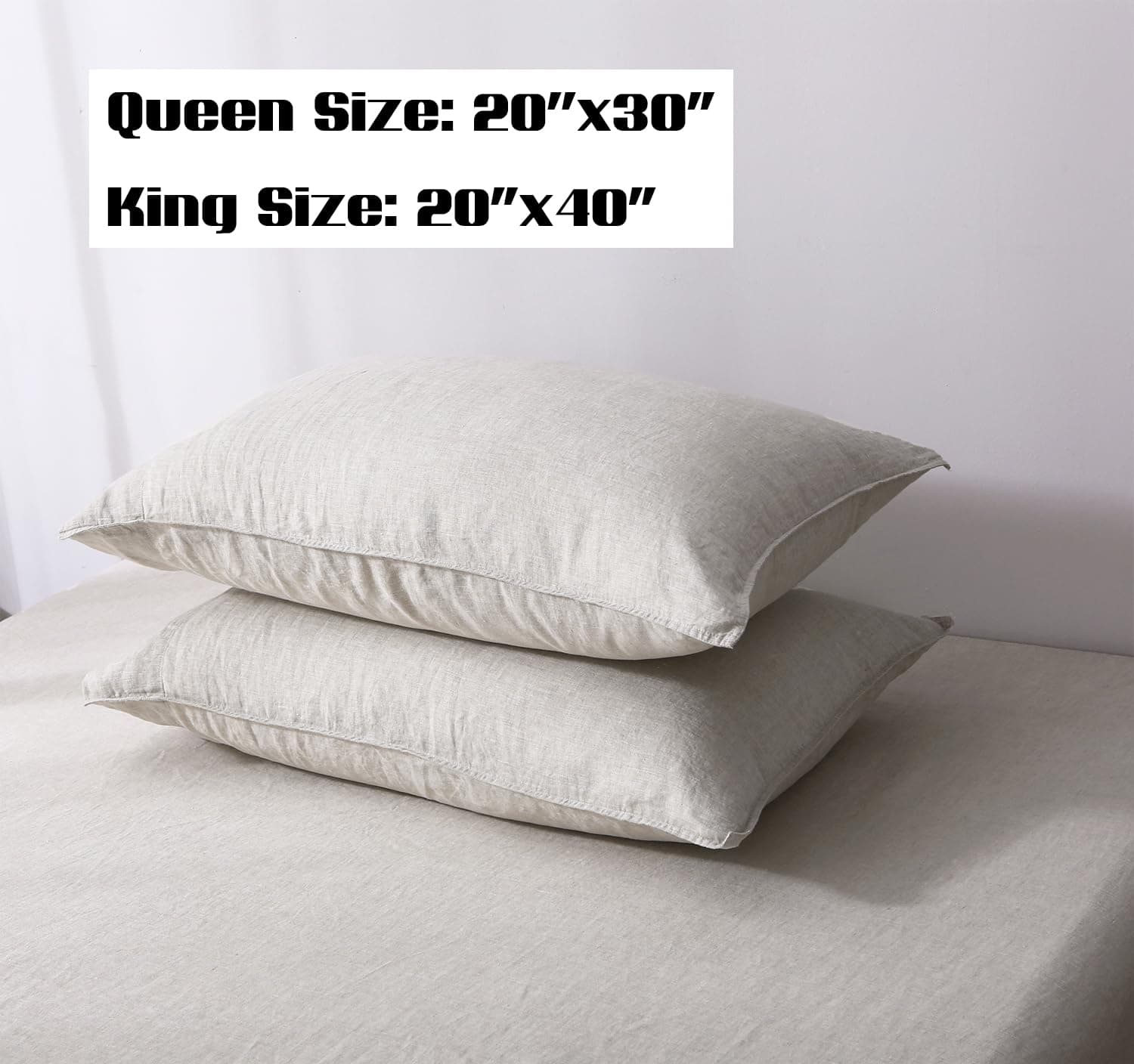 3. Incluye: Juego de 2 fundas de almohada de lino natural, Tamaño estándar: 20″x 30″ (51 x 76 cm), Tamaño King: 20″x 40″(51cm x 102cm).