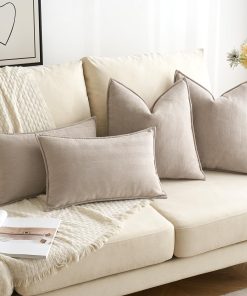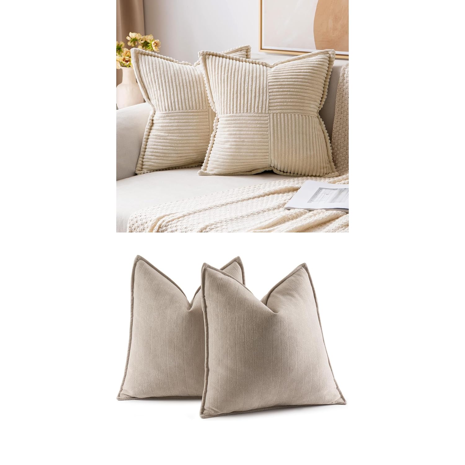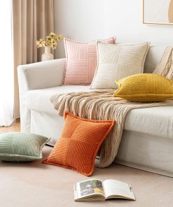 Funda de Almohada de Pana MIULEE con Rayas Beige