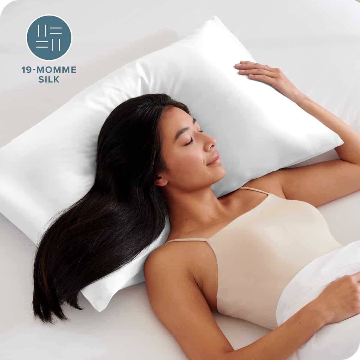 3. OBTENGA SU SUEÑO DE BELLEZA: Las fibras de seda suaves minimizan la fricción en la piel y el cabello, para prevenir la irritación y la rotura. La seda también es hidrofóbica y no absorberá la humedad de la piel mientras duerme.