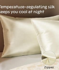 3. REGULADOR DE TEMPERATURA: Disfrute de un sueño confortable durante todo el año en su funda de almohada de seda, ya que la seda regula naturalmente la temperatura, manteniéndolo fresco en verano y cálido en invierno.