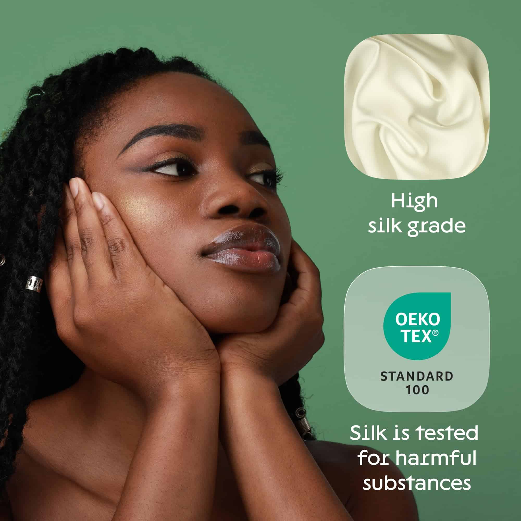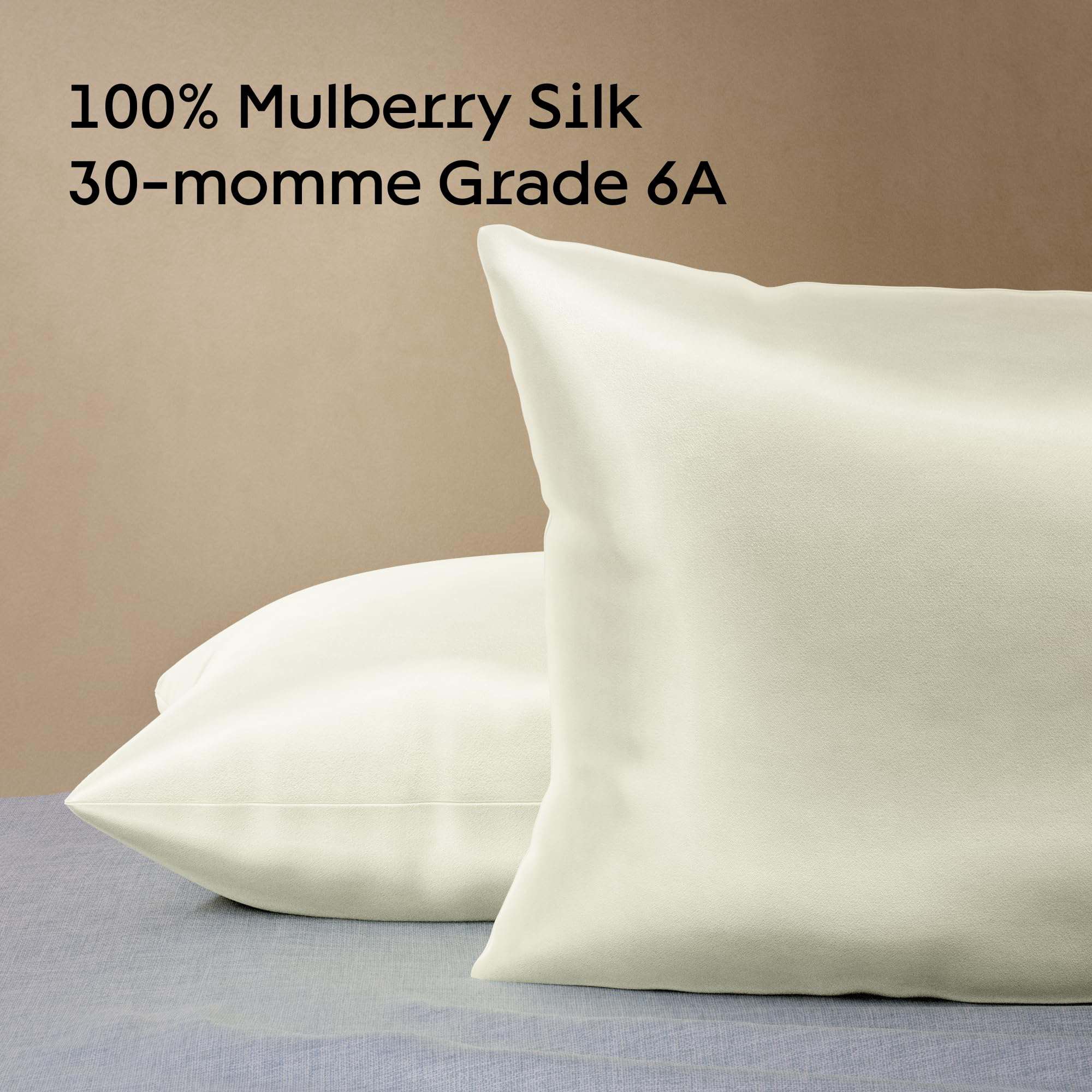 1. 100% SEDA DE MORERA: Nuestras fundas de almohada de seda presumen un lujoso grosor de 30 momias, asegurando una calidad y durabilidad excepcionales. El tejido de alta densidad en cada funda de almohada de seda significa la más alta calidad disponible, brindando una suavidad y longevidad incomparables.