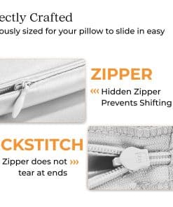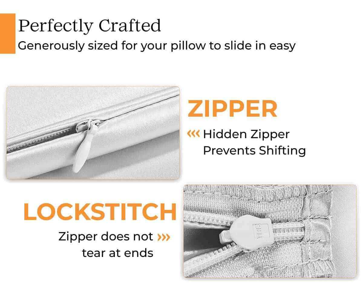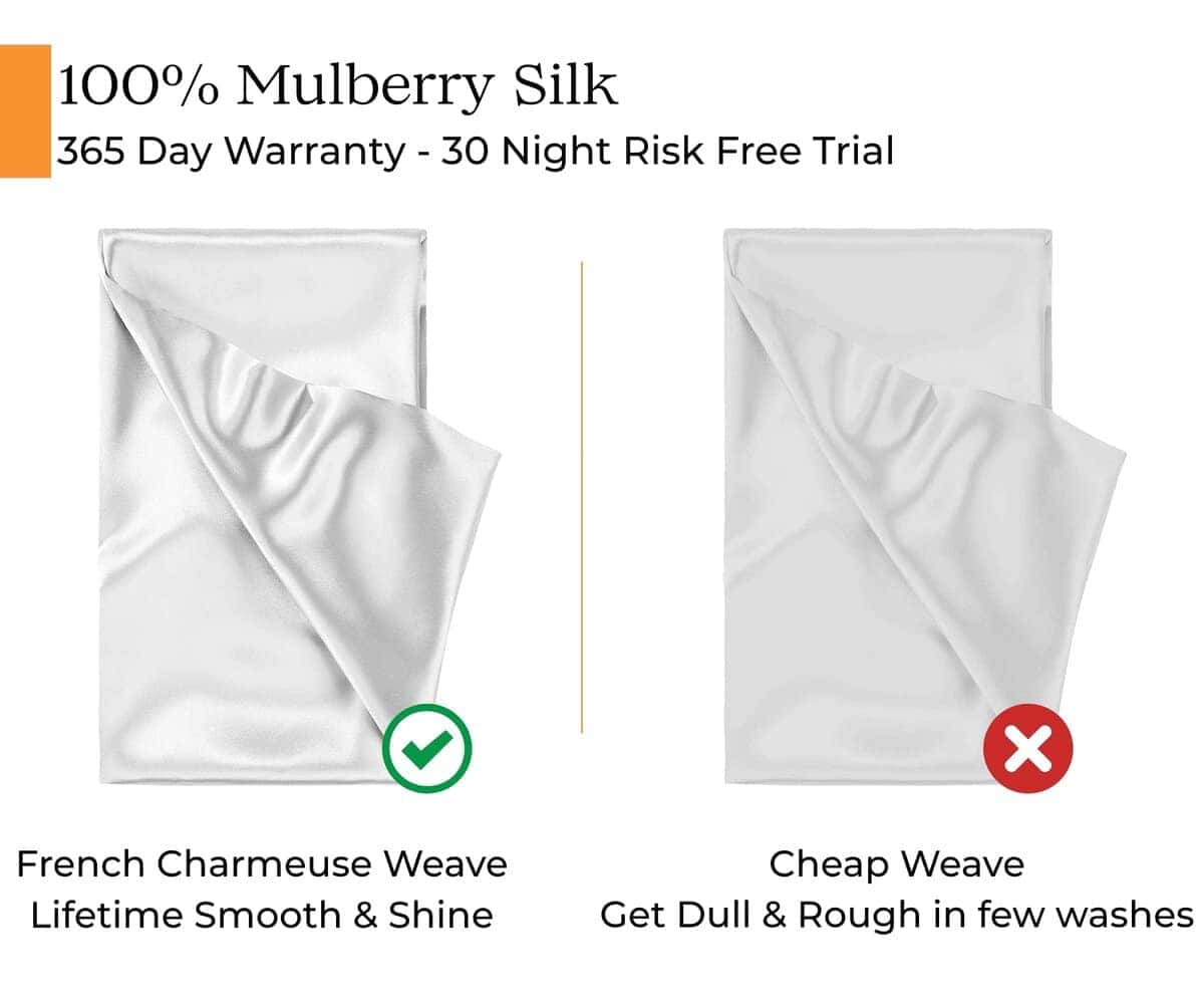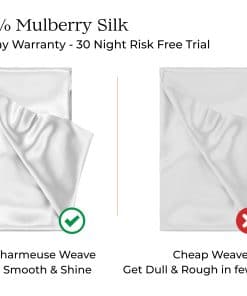 1. FUNDA DE ALMOHADA DE SEDA 100% CON TEJIDO DE SATÉN FRANCÉS: No todas las fundas de almohada de seda son iguales. Nuestra lujosa funda de almohada de seda de morera pesa 22 momme pero ese no debería ser el único factor que debes considerar al hacer la compra. El tejido de satén francés es lo que nos hace especiales, lo que asegura que nuestra funda de almohada nunca pierda su brillo o se vuelva opaca incluso después de varios lavados. Incluye una funda de almohada de seda King que mide 20″ L x 36″ W con cierre de cremallera oculta.