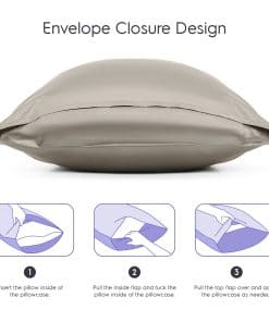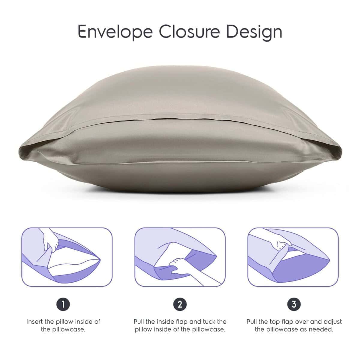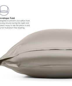 COOLING PILLOWCASE + CIERRE DE ENVELOPE – Duerme tranquilamente con las fundas de almohada de seda de morera 100% pura de Taft, diseñadas para regular naturalmente tu temperatura corporal toda la noche. La capacidad única de la seda para atrapar aire entre los hilos te mantiene fresco en verano y cálido en invierno. Nuestras fundas de almohada cuentan con un cierre de sobre para un aspecto impecable, evitando que tu almohada se mueva durante la noche. Además, hace que sea fácil colocar y quitar la almohada para lavarla sin complicaciones.
