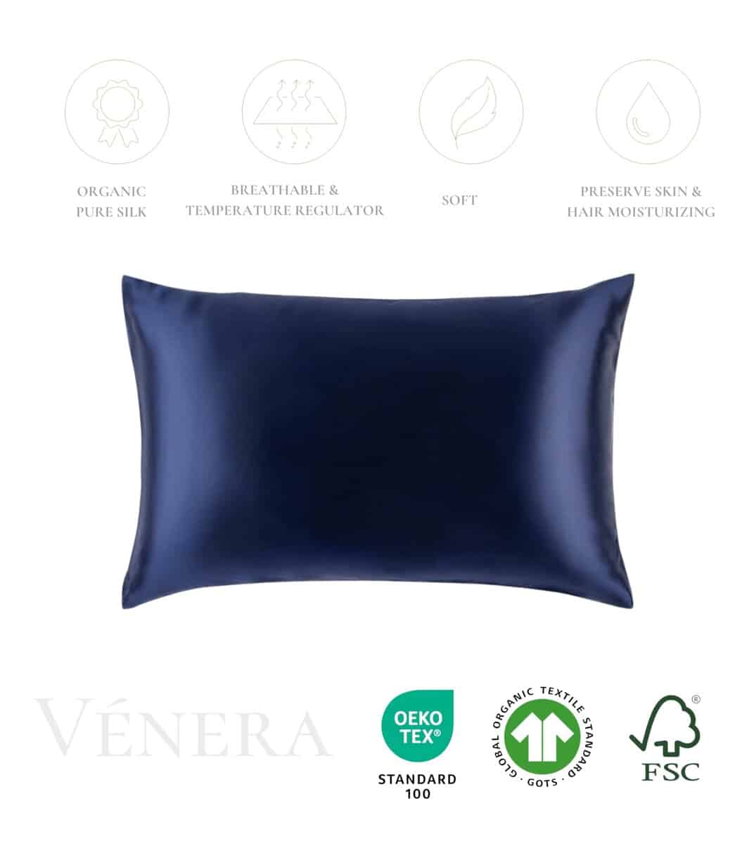 Funda de Almohada de Seda 100% Pura de Morera -Azul