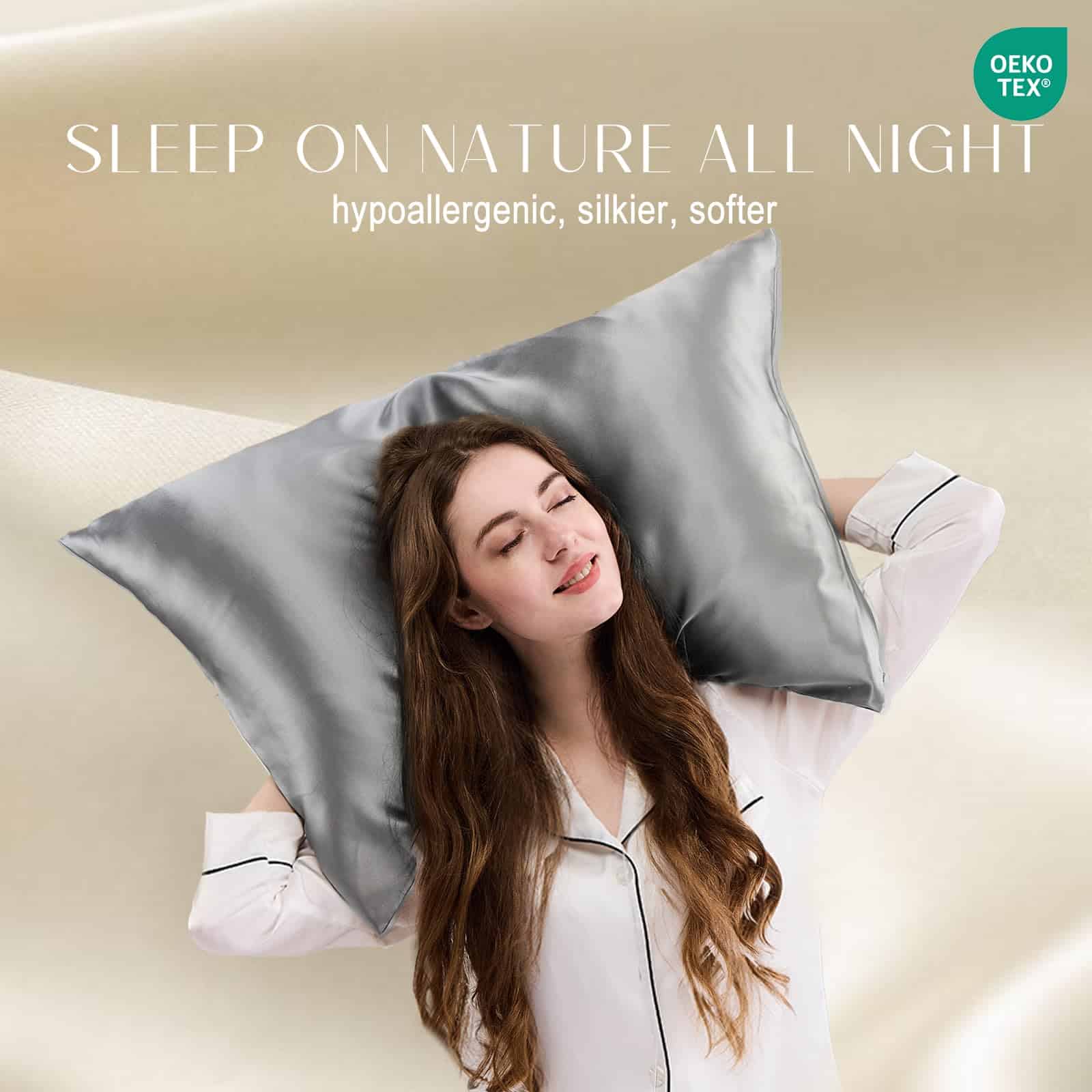Funda de Almohada de Seda 100% Pura de Morera -Gris