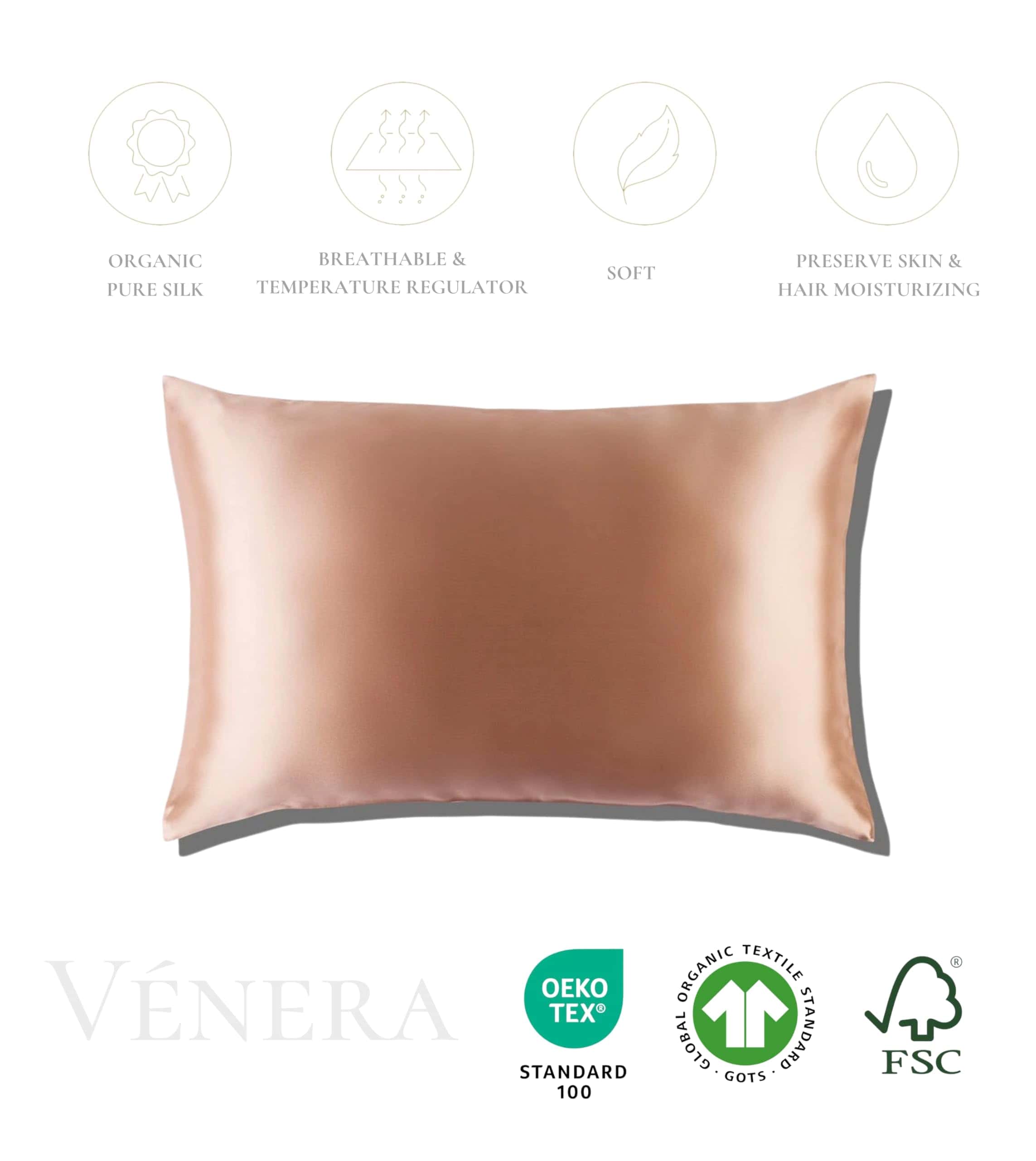 Funda de Almohada de Seda 100% Pura de Morera -Rosa