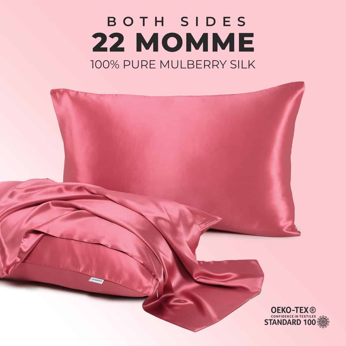Funda de almohada de seda 100% pura de -Rosa Pink