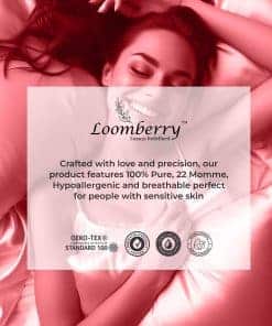 LOOMBERRY SEDA GRADO 6A 22 MOMME: 100% Seda de Morera Pura, Estas fundas de almohada están construidas con seda pura que le brinda una longevidad excepcional, Fácil de cuidar sin arrugas, Transpirable, Fibra natural y orgánica. Única artesanía y fibras orgánicas previenen la irritación en tu piel delicada, Producto natural anti-envejecimiento, Suave y transpirable, Estas fundas de almohada cuidan de tu cabello, Ya sea rizado o lacio, estarán menos enredados y te levantarás con un cabello más suave, Ideal para prevenir arrugas faciales y de cuello, piel seca, cabello enredado y el temido ‘bed head’. Promete un sueño cómodo y te brinda una sensación suave y brillante a tu dormitorio, Experimenta la elegancia de nuestras fundas de almohada de seda, La funda de almohada de seda de morera te proporciona una sensación suave y se asegura de que estés cómodo y tengas un sueño profundo. Loomberry Silk Pillowcases son ideales para regalar a tus seres queridos en cualquier festividad o ocasión especial (bodas, baby showers, cumpleaños, aniversarios), También es un gran regalo para cualquier persona a la que le guste un sueño reparador. La seda es un regulador de temperatura natural, Estas fundas de almohada te brindan un efecto fresco en verano y te mantendrán más abrigado en invierno, La funda de almohada de seda es un lujo para disfrutar durante todo el año. Certificado OEKO-TEX Standard 100.