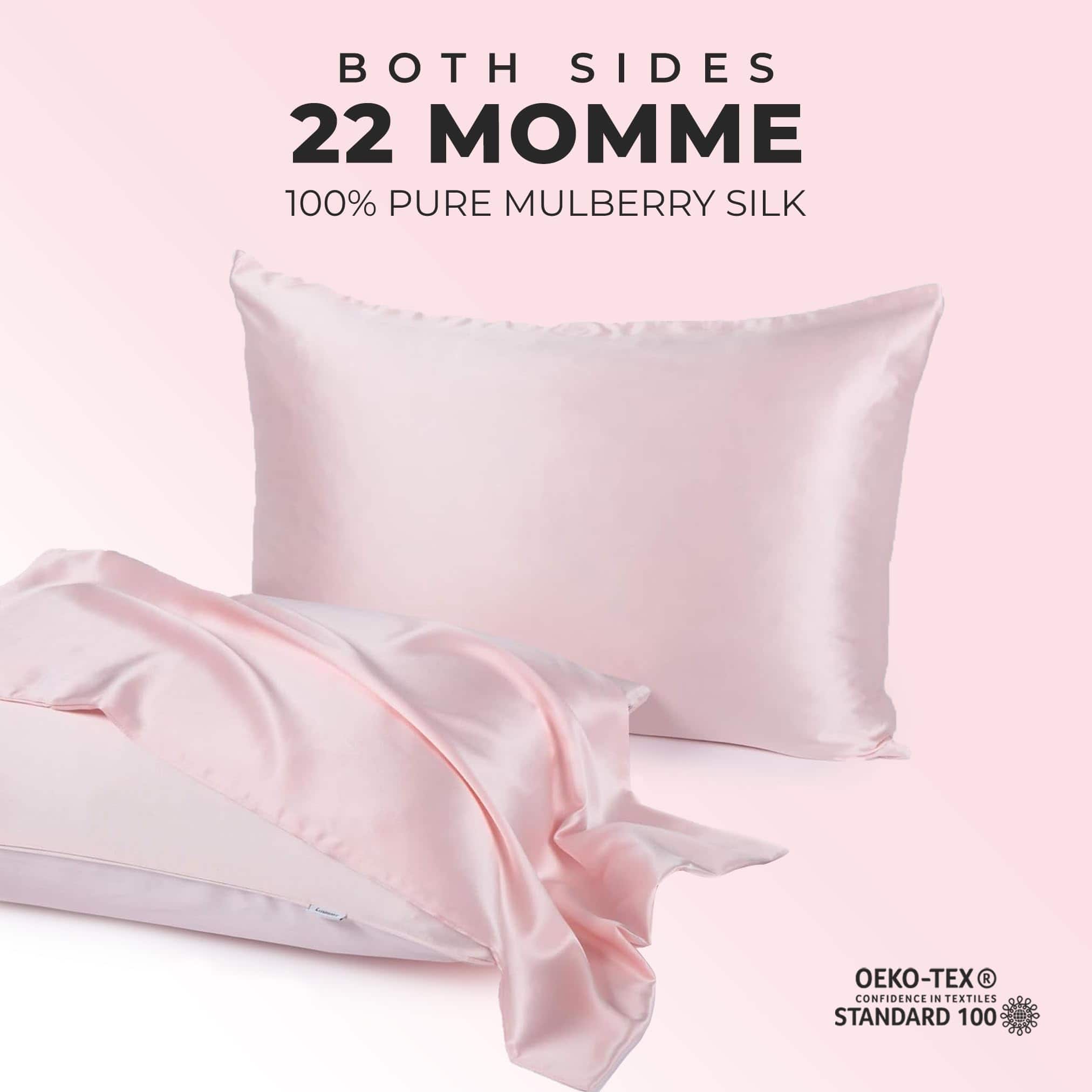 Funda de Almohada de Seda 100% Pura de -Rosado