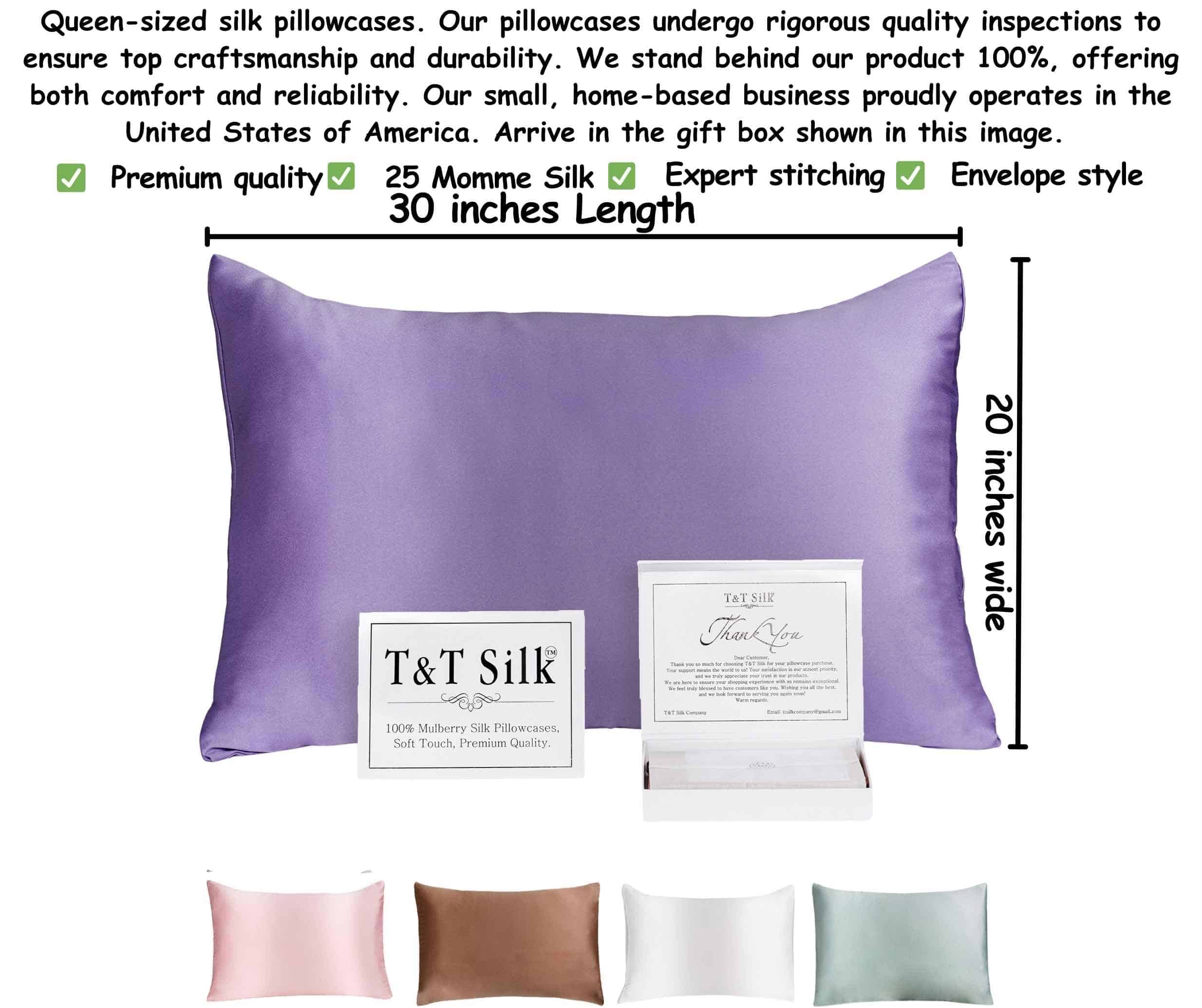 Funda de Almohada de Seda 100% T&T, Seda de Morera de 25