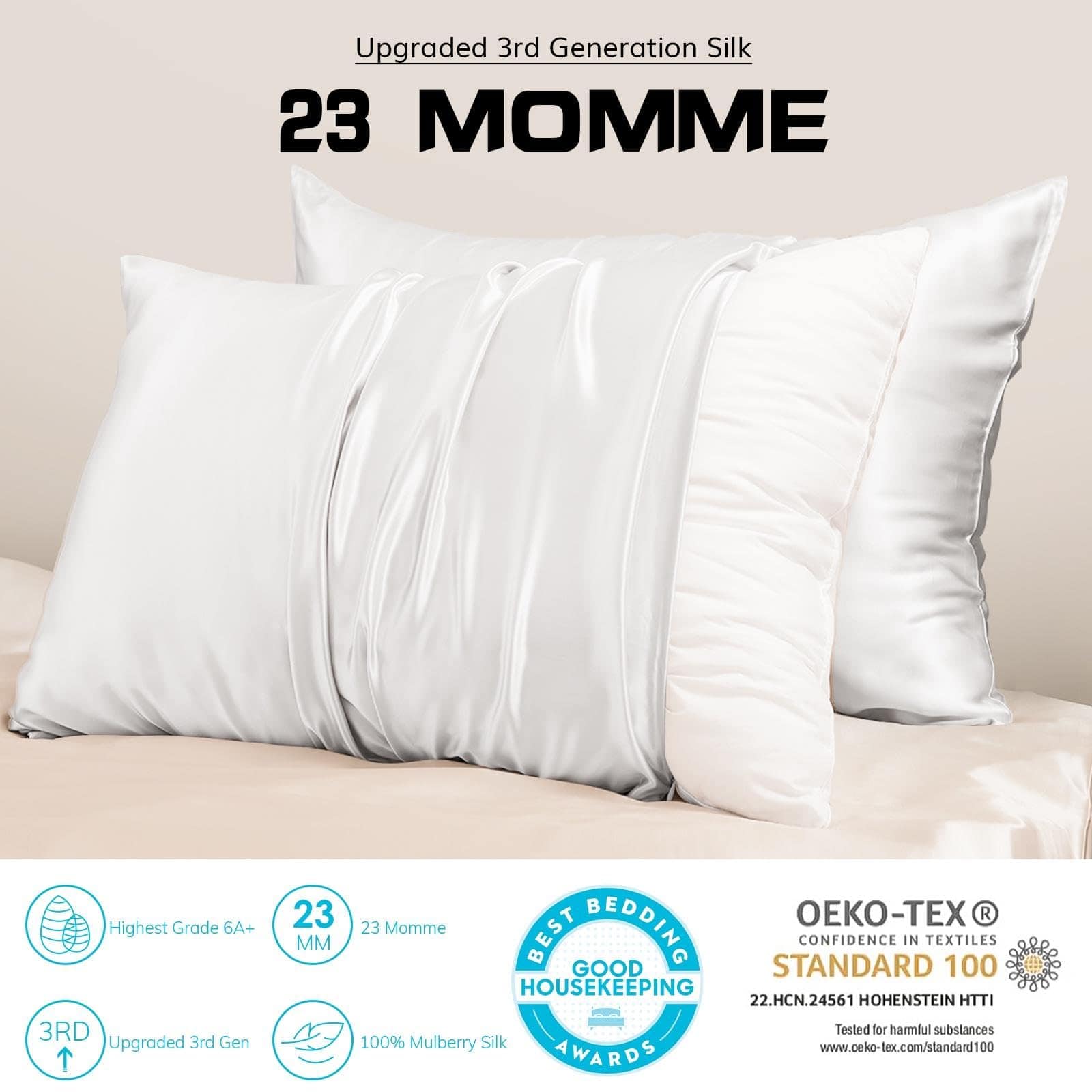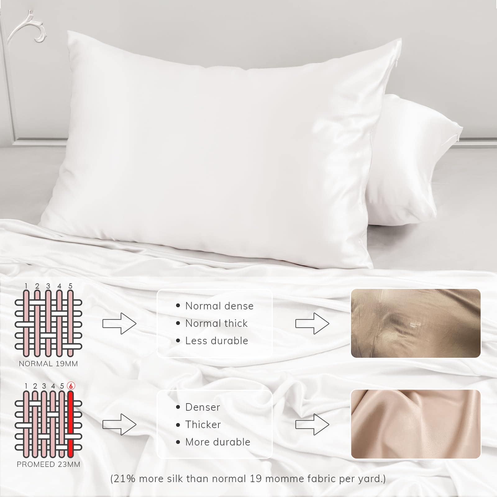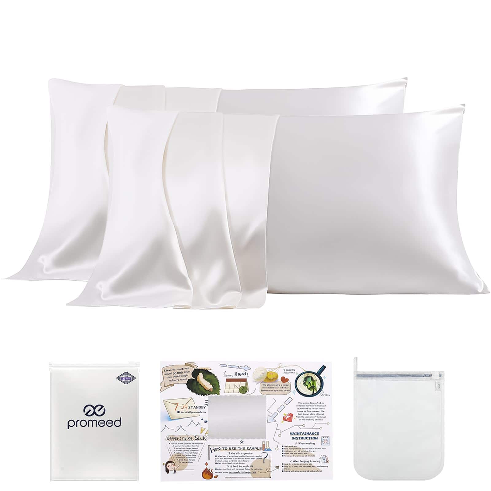 Funda de Almohada de Seda Blanca PROMEED 2 Pack para