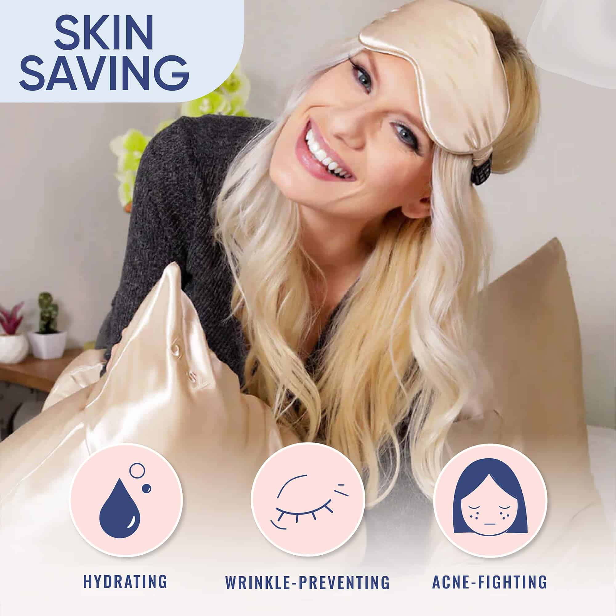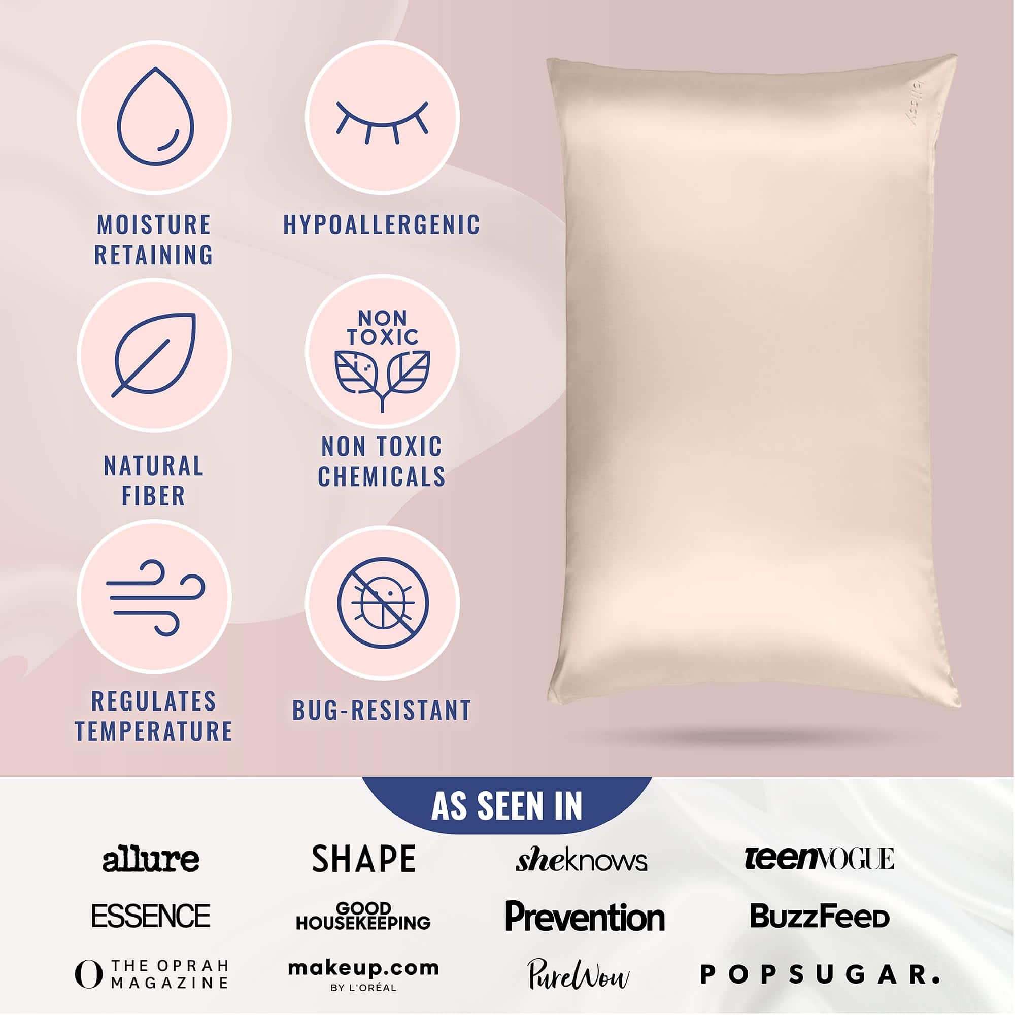 Funda de almohada de seda Blissy – 100% Seda de Morera Pura – 22 Momme 6A Fibras de Alta Calidad – Funda de Almohada de Seda para Cabello y Piel – Tamaño Regular, Queen y King con Cremallera Oculta (Queen, Champagne). TAKE YOUR HAIR FROM DRAB TO FAB: ¡No más cabello desaliñado o cansado! ¡Di adiós a la resequedad y los enredos! Blissy evita el tirón y jalon proporcionado por las fundas de almohada comunes. Además, la superficie no absorbente ayuda a mantener los aceites naturales de tu cabello. SKIN SAVING: ¿Por qué perder tiempo y dinero en una funda de almohada que solo absorberá nutrientes vitales de la piel Con Blissy 100% Seda de Morera, tu piel mantendrá la humedad equilibrada que necesita para formar una capa protectora. ¡Combate la sequedad y el acné, dos caras de la misma moneda! MEJOR Y MÁS FRESCO SUEÑO: Las propiedades de regulación de temperatura de la funda de almohada de seda Blissy te permiten mantenerte fresco en todo momento durante la noche sin la incomodidad asociada con la fluctuación de la temperatura y las constantes vueltas para un sueño reparador. DISFRUTA DE UNA MAÑANA MÁS FRESCA: Di adiós a la incomodidad y hola a un sueño más relajante con nuestra funda de almohada de seda. Su superficie suave es menos propensa a irritar la piel sensible, lo que te ayudará a despertar sintiéndote fresco, con una tez más clara y un comienzo más cómodo de tu día.