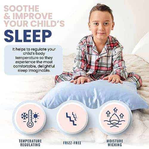 2. SUEÑO MEJOR Y MÁS FRESCO: Las propiedades reguladoras de temperatura de la funda de almohada de seda Blissy permiten que sus pequeños se mantengan frescos en todo momento durante la noche sin la incomodidad asociada con la temperatura fluctuante y el constante revolcarse para una noche de sueño reparador.