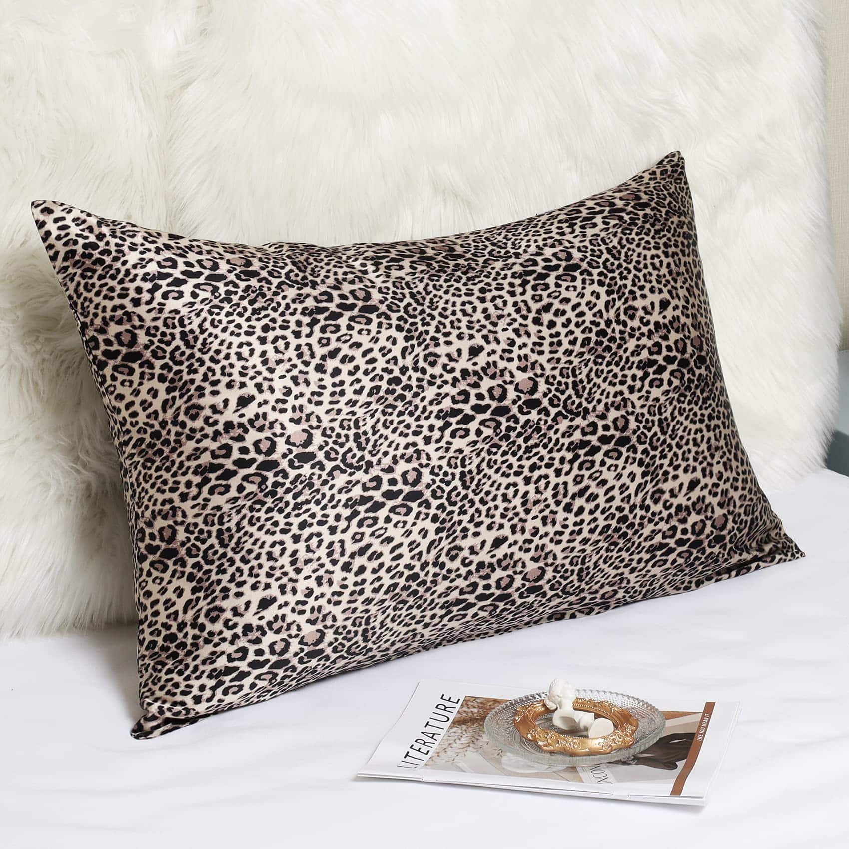 Funda de almohada de seda de leopardo marrón MANSPHIL